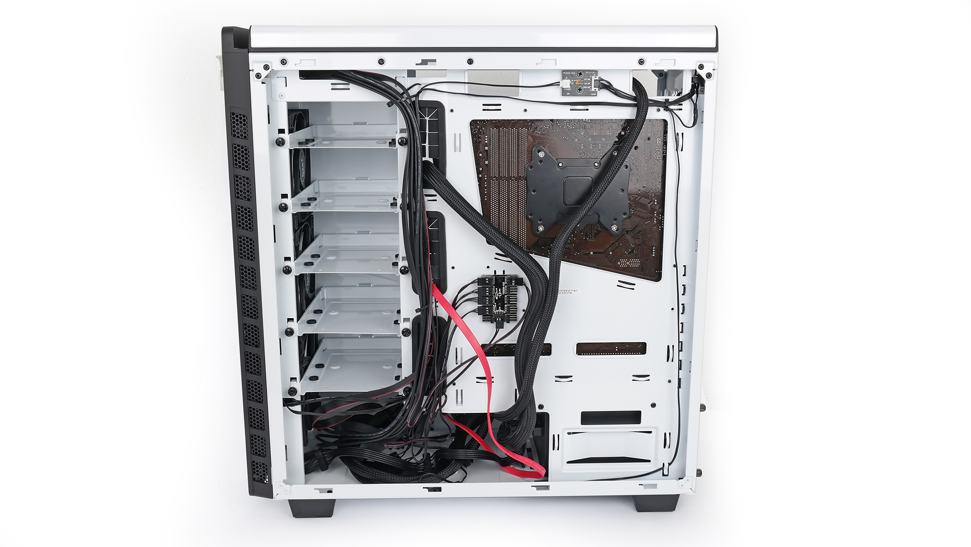 För att bli av med kabelrester och andra överblivna kablar så är det bara att stuva in allt vid det stora utrymmet bredvid nätaggregatet. Smidigt för ett snabbt och rent bygge, men för den som vill anstränga sig lite extra så finns det gott om öglor för att spänna fast kablarna.