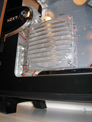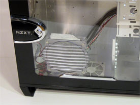Kylningen är väl tilltagen på detta chassi. NZXT har valt att sätta ett luftfilter framför den stora 120mm fläkten som har som jobb att kyla hårddiskarna, filtret kan man plocka loss och göra rent, vilket är mycket uppskattat då damm på komponenterna försämrar kylningen. Det sitter även en 80mm fläkt i bottnen på chassit som också skyddas av ett dammfilter.