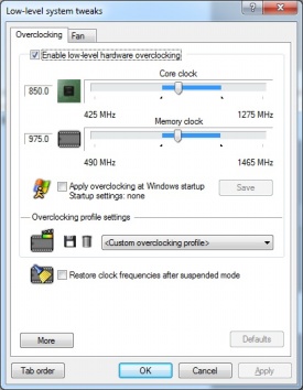 RivaTuner är annars ett av de mest populära programmen för att överklocka grafikkort. Både AMD och NVIDIA har sina egna program, GPu Clock tool och nTune, som fungerar bra i regel, men de har också begränsade inställningsmöjligheter av säkerhetsskäl. För den som inte siktar alltför högt duger de alldeles utmärkt.
