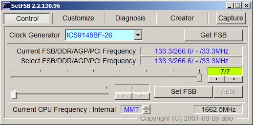 Det finns ett antal program som kommit och gått under åren, men ett som bestått är setfsb. Det är ganska barskrapat, men samtidigt rakt på sak. Med ett enkelt och tydligt gränssnitt låter det användaren överklocka processorbussen, och därmed även processorn. Det rekommenderas mest till avancerade användare där de vanliga programmen, som följer nedan, inte räcker till.