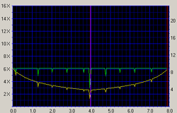 Läsningen av DVD+r är också i det närmsta identisk med DVD-r, en konstant vinkelhastighet bibehålls utan problem även längst ut på skivan. Notera dock att vi har använt oss av relativt dyra skivor för testerna, det är inte alls säkert att samma mönster upprepas för billigare skivor. Det bästa är helt enkelt att testa sig fram.