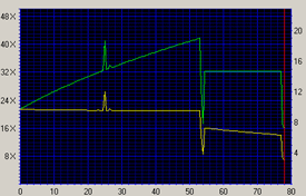 En första anblick på graferna för brännhastigheten kan få vem som helst förfärad, det ser ut som att någon placerat brännaren på bashögtalaren under en Rammsteinkonsert. Pikarna har dock en förklaring, brännarna är utrustade med PowerRec vilket gör att brännaren stannar till lite och då och analyserar skivan och avgör om skivan kan brännas snabbare. De plötsiga nedvarvningarna är helt enkelt tiden som skivan gör en snabbanalys. Uppenbarligen klarade brännarna av att bränna dessa skivorna i full hastighet då båda brännarna toppade väldigt nära 16x i slutet av bränningen. Vi ser ingen påtaglig skillnad mellan den externa och den interna varianten i detta skede.