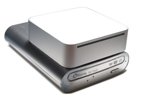 Den externa enheten har i princip exakt samma tekniska specifikationer som den interna, vi tänker därför inte upprepa denna utan hänvisar läsare till föregående sida för gemensamma tekniska detaljer. Den stora skillnaden, förutom utseendet, är att den externa brännaren ansluts till datorn med antingen USB 2.0 eller FireWire istället för IDE. Val av läge görs genom att slå om en strömbrytare på baksidan av enheten.