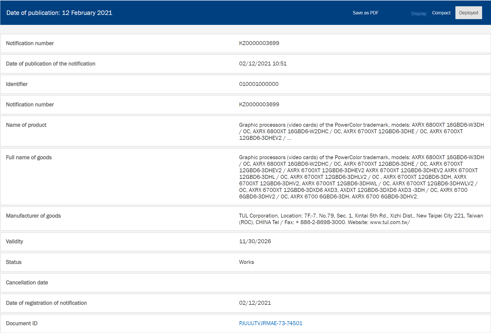 AMD:s kommande medlemmar i Radeon RX 6000-familjen har ännu en gång listats hos Eurasian Economic Commission (EEC). Tidigare har tillverkare som Asrock listat sina kommande upplagor av grafikkorten och nu har Powercolor gjort detsamma.