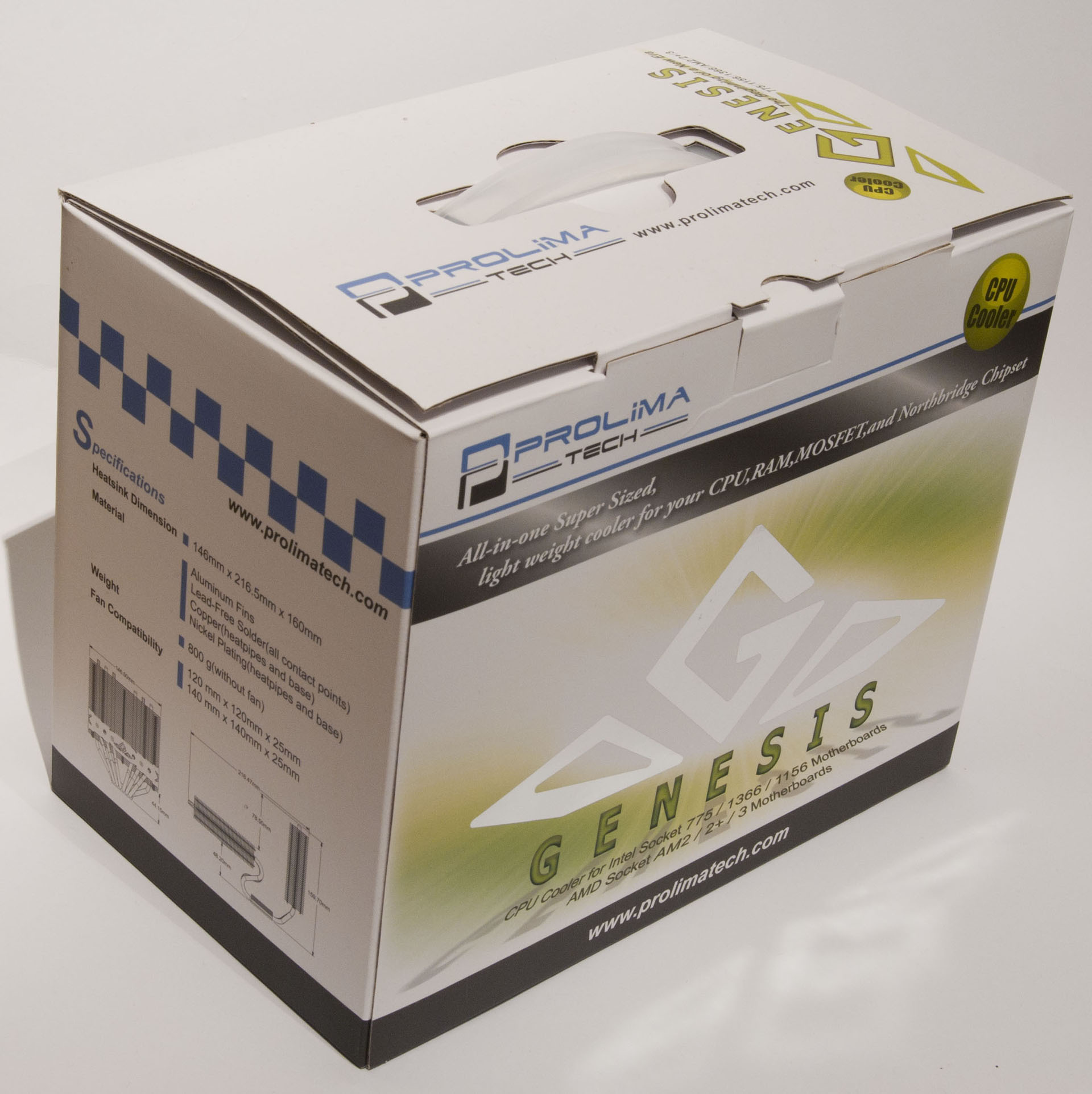 Prolimatech har med Genesis valt att vidareutveckla torndesignen. Där de vanliga tornkylarna tidigare bara flyttat runt luften i chassit har Prolomatech med Genesis vinklat ner ett av tornen så att luften nu inte bara flyttas runt, utan den kyler även minnen samt andra komponenter som sitter runt minnesplatserna.