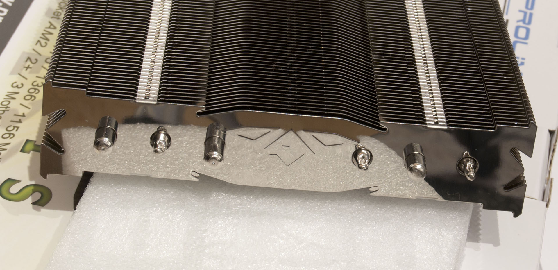 När man sedan öppnar förpackningen så hittar man kylaren i en form samt en liten kartong med alla tillbehör. Prolimatech skickar med montering för Intel 1366/1156/1155/775 samt AMD AM2/AM3. De skickar också med montering för 2 stycken fläktar 120/140mm, kylpasta, en Prolimatech dekal samt en manual. En intressant sak här är att enligt Prolimatech själva så har kylaren stöd för 3 stycken fläktar, även fast de endast skickar med montering för två fläktar.