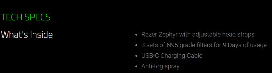 Razer har nu redigerat sina produktsidor för ansiktsmaskerna Zephyr och Zephyr Pro. Dessa nämner inte längre att produkterna skulle levereras med N95-certifierade filter.