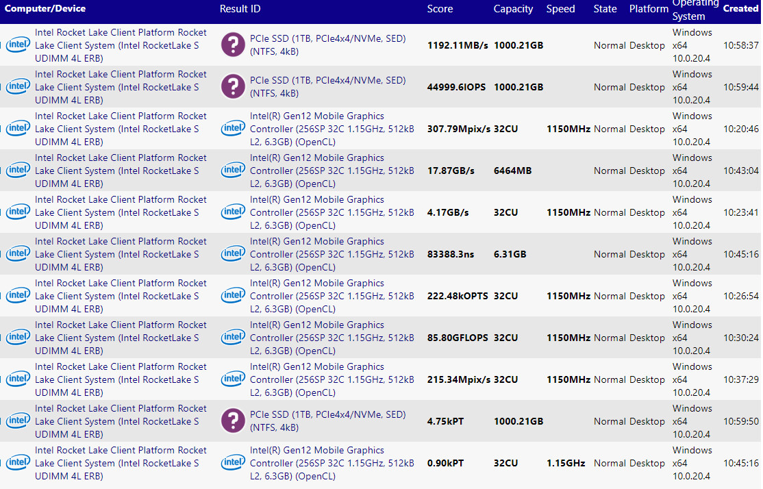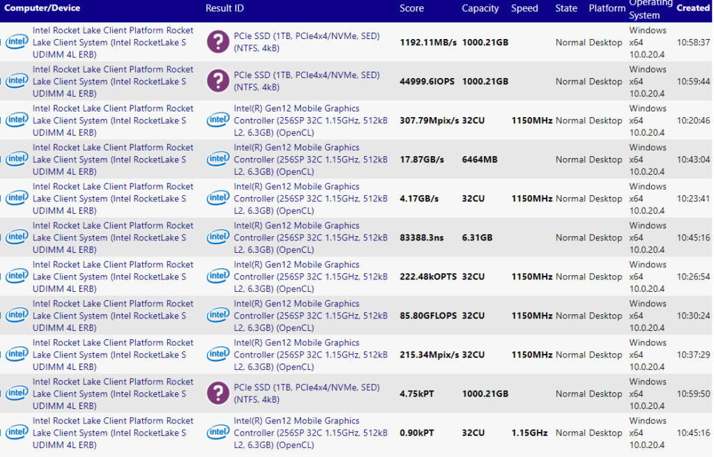 Enligt vad som ska vara en skärmdump inifrån databasen för SiSoft Sandra har en Rocket Lake-S processor nu listats i databasen tillsammans med en SSD-enhet som nyttjar det nyare gränssnittet.
