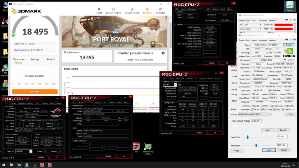 Nvidias potentiella förändring i produktionen påverkar inte vardagligt bruk av dessa grafikkort. Det är när exotisk kylning introduceras och enheterna verkligen pressas till det yttersta som bevisen börjar dyka upp. Rauf spår att han förmodligen hade kunnat pressa sitt RTX 3080 Ti Hall of Fame från Galax till omkring 2 835 MHz på grafikprocessorn om den hade kunnat hantera högre spänning. Då spänningen inte vill lägga sig på 1,5 volt landar han nu istället på 2 775 MHz med sitt RTX 3080 Ti.