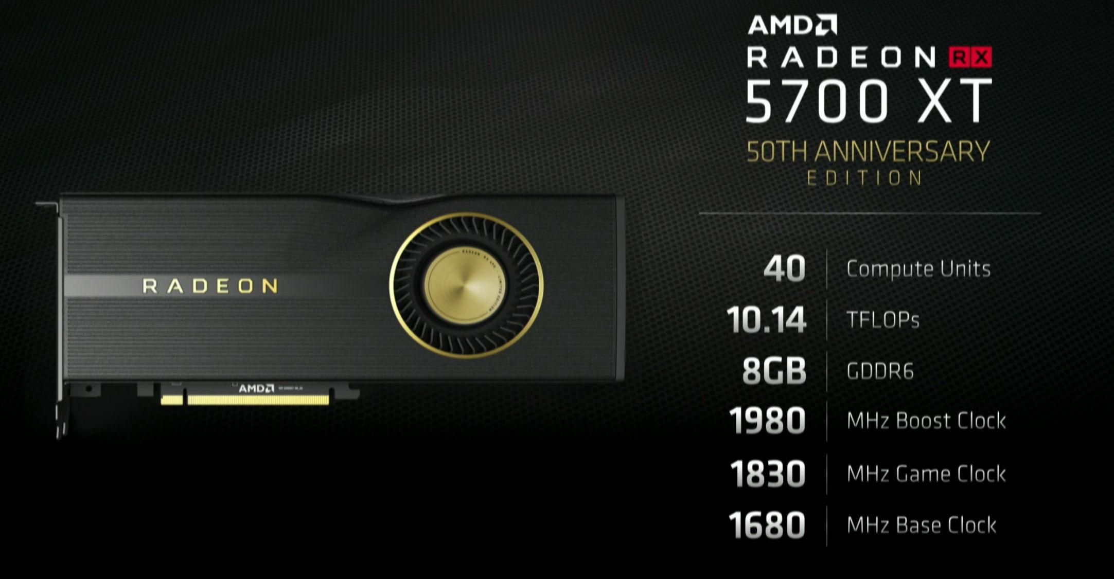 I samband med att dessa två grafikkortsmodeller avtäcktes visade AMD även upp en jubileumsutgåva kallad RX 5700 XT Anniversary Edition. Likt jubileumsutgåvan av processorenheten Ryzen 7 2700X är denna enhet framtagen för att fira AMD:s 50 år som företag.