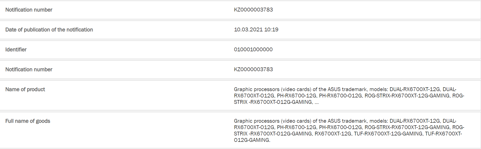 De två enheterna som listats är ur Asus Phoenix-serie. Den ena med samma klockfrekvenser som AMD:s referensdesign och den andra med en fabriksöverklockning. Båda modellerna listas dock med dubblerad mängd videominne jämfört med när vi senast såg RX 6700.