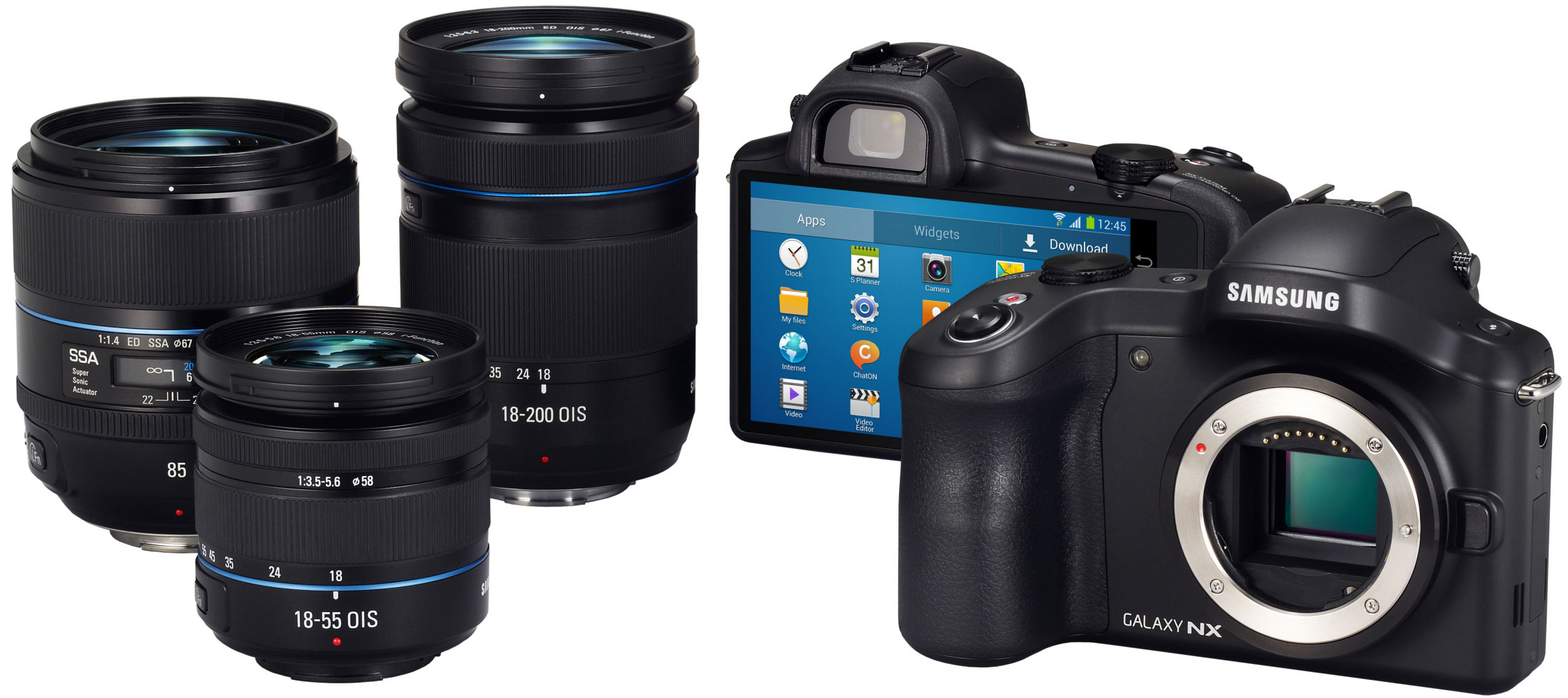 Samsung fortsätter att bygga digitalkameror med Android under huven och deras nya toppmodell Galaxy NX är den tuffaste hittills. Galaxy NX kommer med en rejälv 20,3 megapixels APS-C sensor, dedikerad bildprocessor och stöd för 4G-nätverk och Android. Samt stöd för NX-seriens utbytbara objektiv.