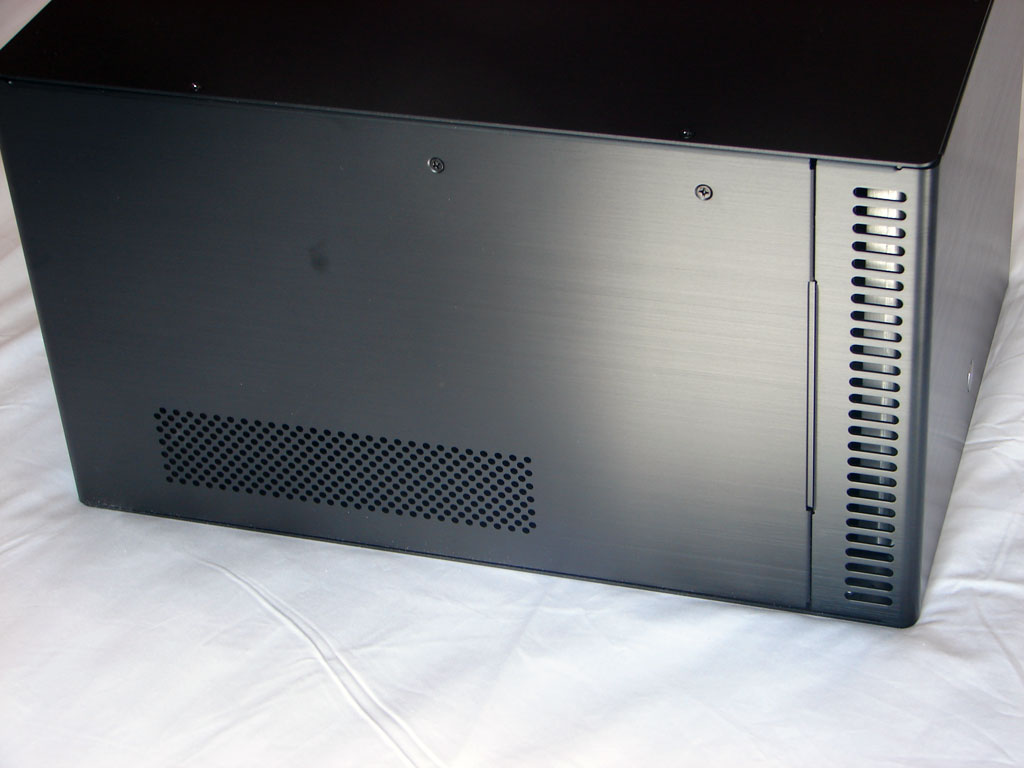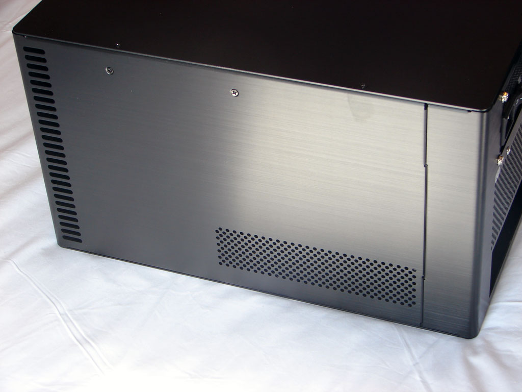 Utsidan var det som först fick oss intresserade. Rena fina linjer. Inga onödiga extremiteter eller flashigheter. Det kändes bara rätt helt enkelt. Som ni kan se på bilderna finns det egentligen inte så mycket att diskutera. Det är ett kubformat chassi med rundade hörn och inga direkta detaljer på sidorna eller där fram. En knapp bara. Sidorna har luftintag närmast fronten för den 140mm stora fläkten som finns innanför och utblås där bak och i nederkant av sidorna.