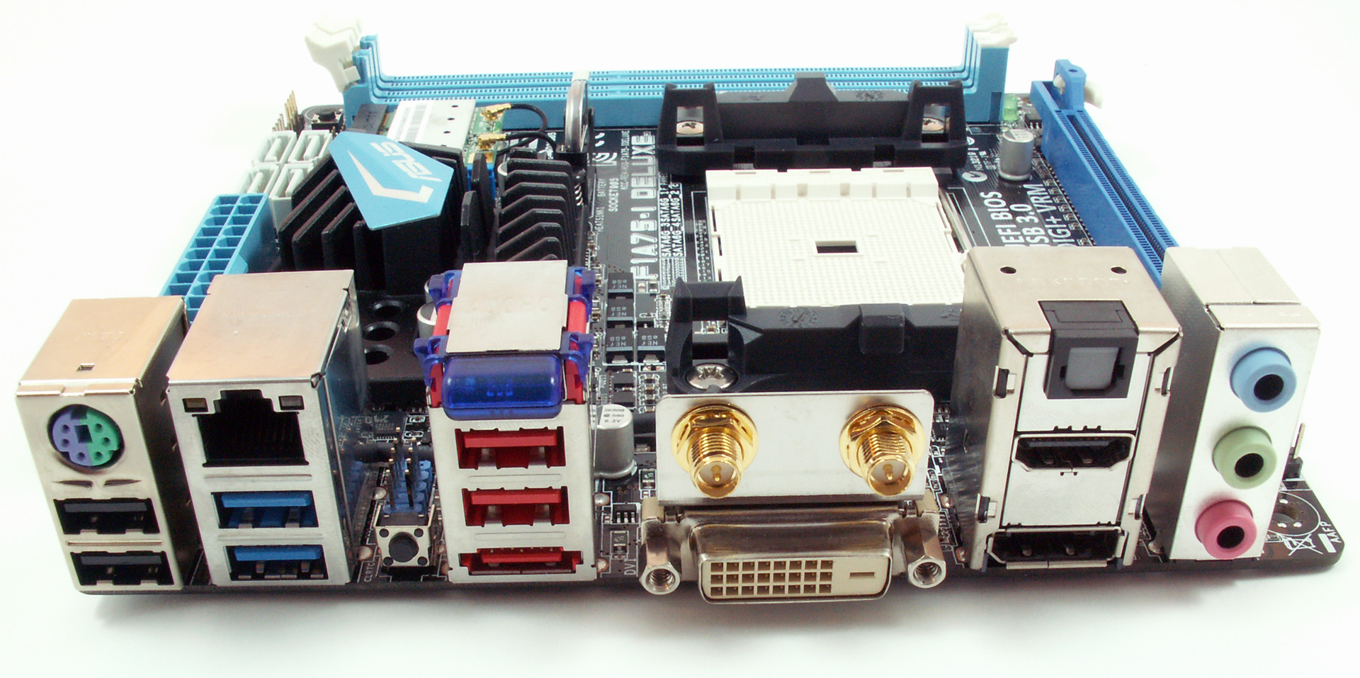 Den största skillnaden i dagens kort är att vi här får komplettera med en egen processor, eller så kallad APU från AMD:s A-serie. Moderkortet i sig är som väntat en liten historia och mäter endast 17x17cm. Trots detta har man troligtvis den mest imponerande specifikationslistan i hela fältet. De vanliga godsakerna i AMD A75 som USB 3.0 och SATA 6,0 Gbps portar backas upp av integrerade kretsar för de trådlösa teknikerna Bluetooth och WiFi 802.11n. Som grädde på moset och en tydlig hint om kortets målgrupp skeppar ASUS sitt moderkort med en egenutvecklad fjärrkontroll.