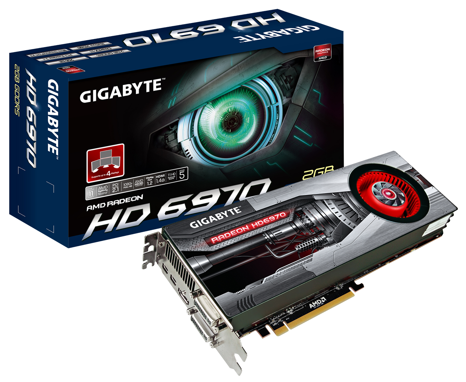 Gigabyte går bland annat in i tävlingen med två stycken Radeon HD 6970 grafikkort. AMD:s nya singel-GPU flaggskepp lanserades så sent som för en knapp vecka sedan och lider fortfarande av bristfällig tillgänglighet, men två av Gigabytes eftertraktade kort har alltså hittat till SM-prisbordet. Grafikkorten har med sin nya Cayman XT GPU imponerande prestanda och bjuder på stöd för bland annat inkoppling av upp till 6 skärmar, dubbla BIOS-kretsar och 2GB grafikminne.