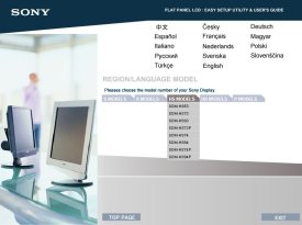 Den medföjande CD-skivan passar till samtliga Sonys akutella modeller, du väljer helt enkelt modell och språk och får fram en meny med drivrutniner, manual, olika verktyg mm, se bild nedan. Här finns inget att anmärka på, alla program du kan tänkas behöva finns även med på skivan (Acrobat Reader, Shockwave mm).