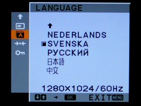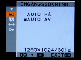 Det finns både en analog och en digial ingång, men mindre ska man inte vänta sig på en skärm av denna kalibern. Bildkvalitén med de olika anslutningarna tas upp längre fram i recensionen. Värt att nämna är att man med endast en knapptryckning kan växla mellan de båda ingångarna vilket kan vara mkt smidigt om du vill ansluta två olika bildkällor till skärmen. För att jämföra de båda ingångarna var denna dessutom väldigt smidigt.