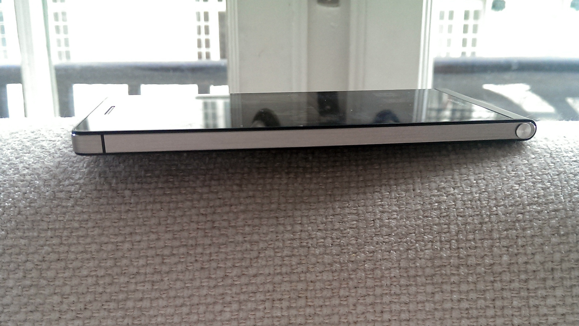 Byggkvaliteten är solid, när vi vrider och bänder är det inget som knakar eller ger efter, än mer imponerande är att man fått in dubbla simkort och en microSD-plats och samtidigt haft kvar unibody-skalet. Jakten på tunnhet har däremot resulterat i en bristande punkt: hörlursutgången är placerad på sidan. Det finns en god anledning till att ingen annan väljer den placeringen då telefonen inte ligger bra i fickan när man har hörlurar ikopplade samtidigt som det finns en större risk för slitskador.