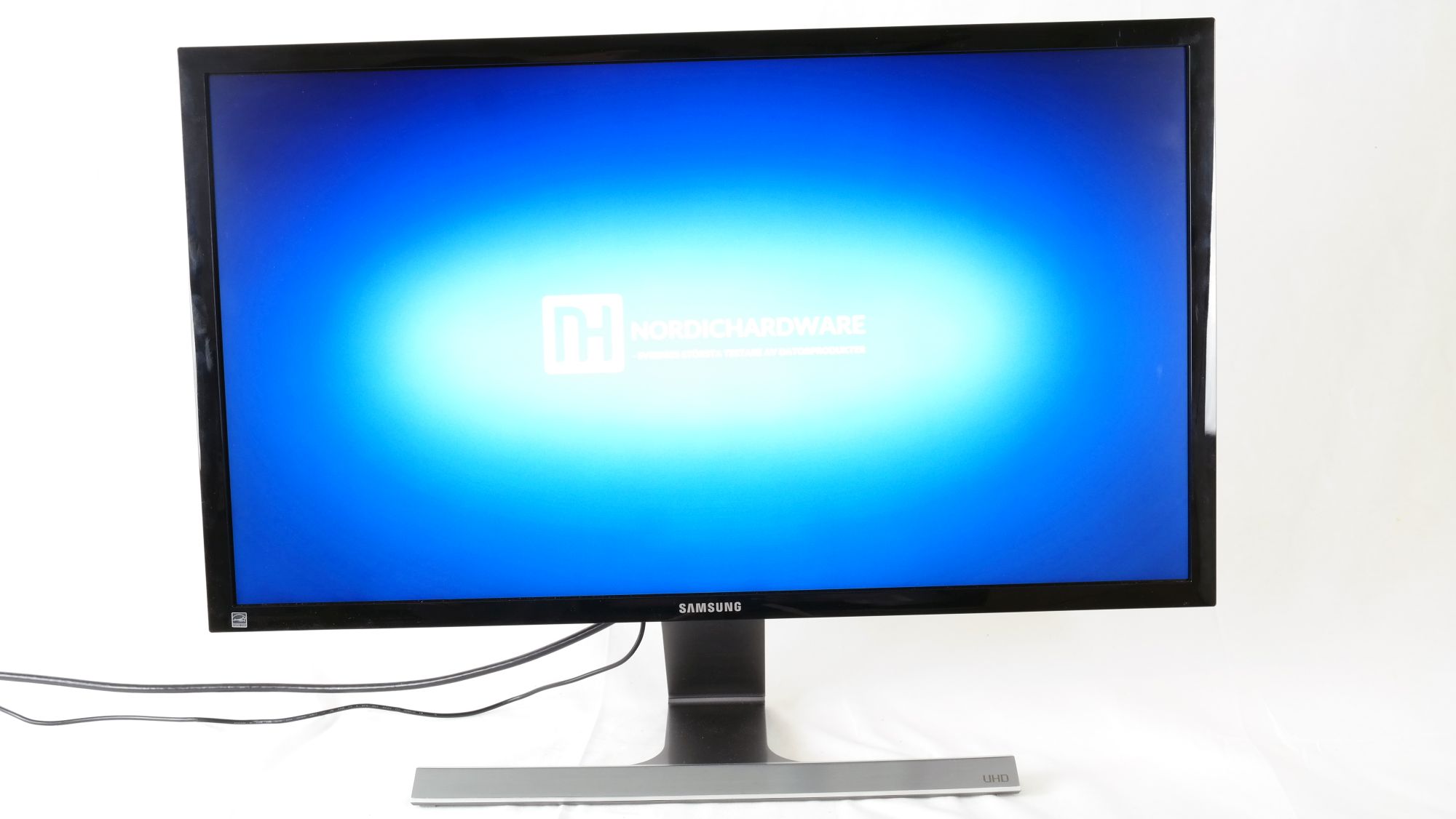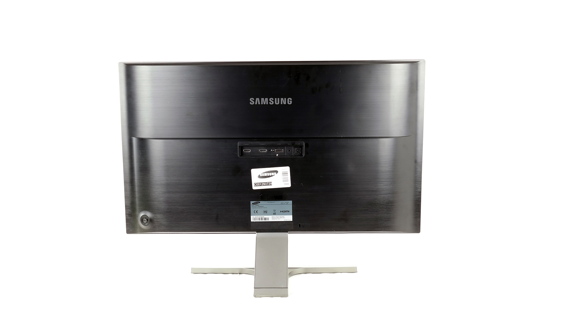 Samsung har satsat på en extra tunn och lätt design med sin U28D590D, som med sina 7,9 kilo är näst lättast i testet. Skärmen har en slimmad T-formad fot som är stabil, men tyvärr inte särskilt flexibel. Skärmens enda justeringsmöjligheter är dess lutning, och det finns ingen möjlighet att hänga upp den på ett VESA-fäste. Samsung är även den enda testdeltagaren som använder ett externt nätaggregat istället för ett integrerat – det innebär att skärmen kan göras lättare och tunnare, men även att det finns en extra länk som kan råka ut för glapp och liknande fel.
