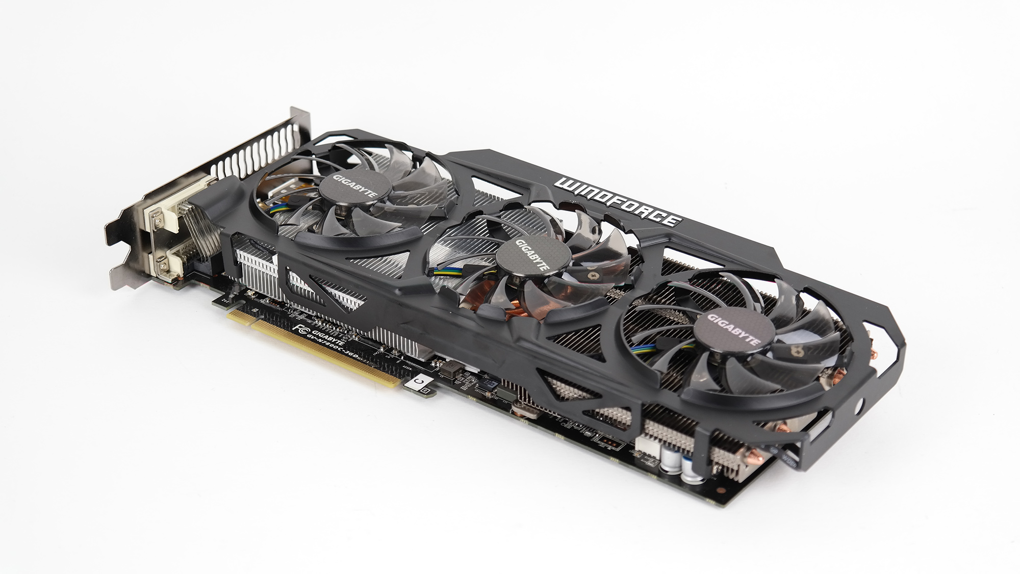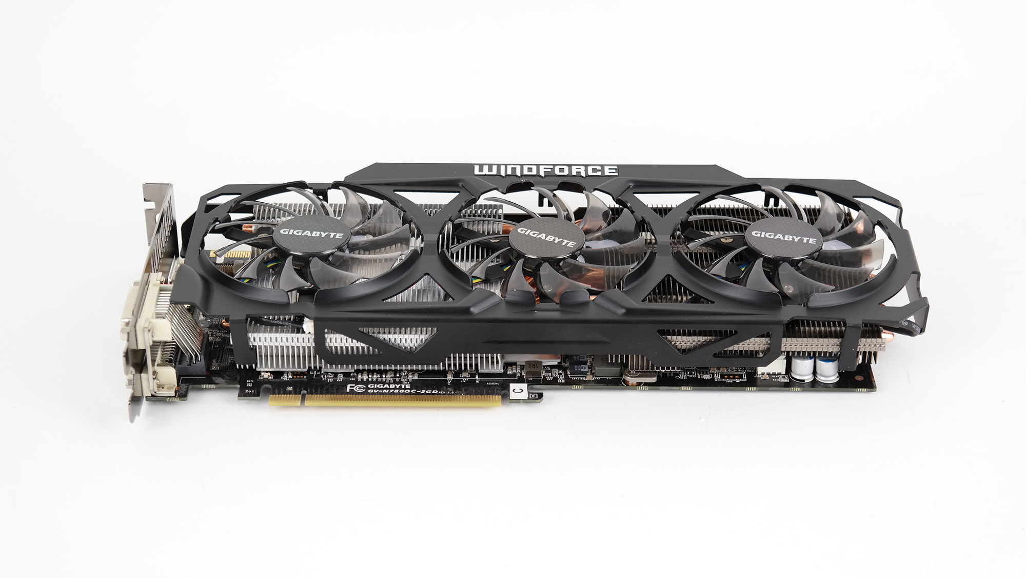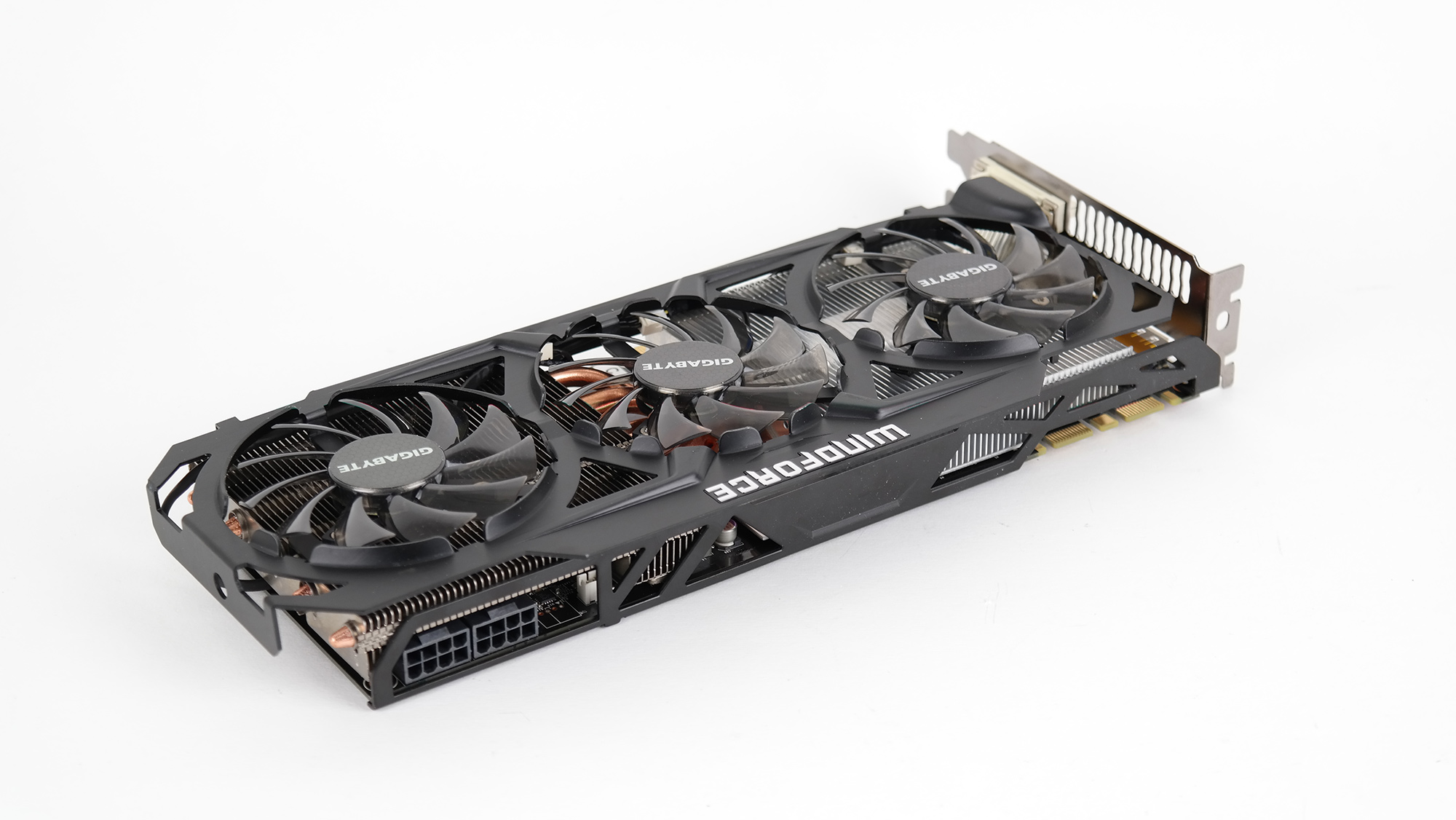 Gigabyte jobbar vidare med sin Windforce-kylare och här är det en enkel men effektiv kombination av en rejäl kylfläns samt tre stora fläktar på vardera 80 millimeter. Kylflänsen ska med sina sex värmeledningsrör i koppar vara kapabel att hantera en värmeutveckling på 450 watt.