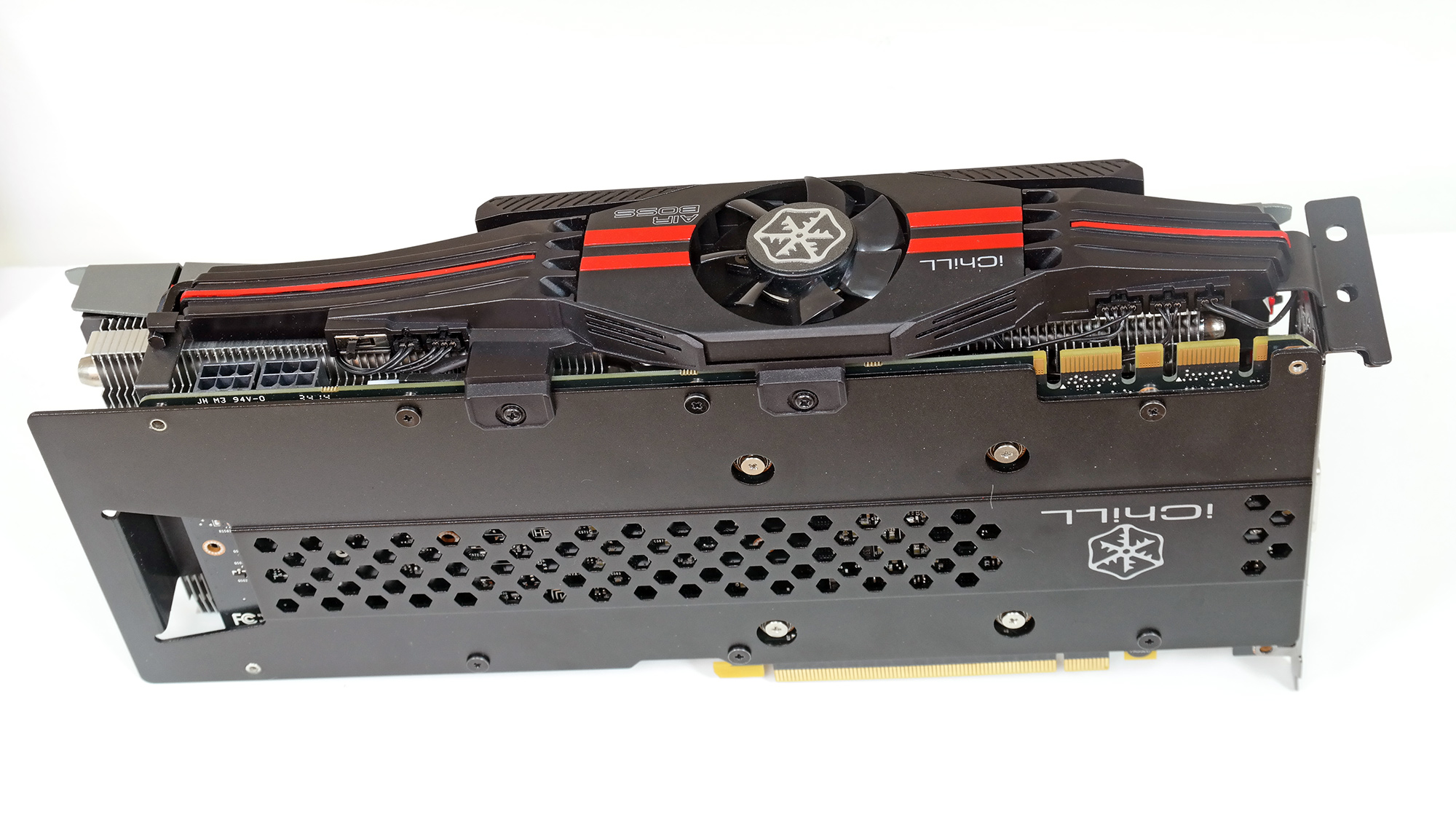 Strömförsörjningen sker via dubbla 6-pinskontakter på sidan och hela kortets baksida pryds av en rejäl, svart backplate.