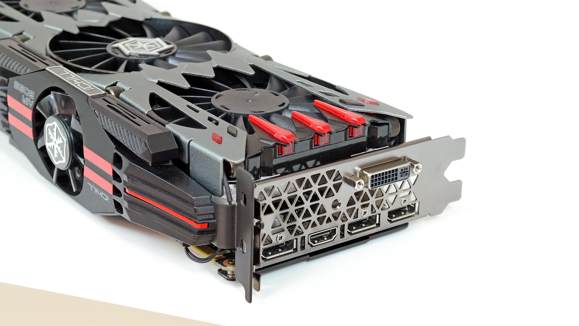 Inno3D:s nya flaggskepp för Maxwell-familjen har fler namn än vi är villiga att rabbla i sin helhet allt för många gånger i artikeln och kommer med ganska generös fabriksöverklockning. Basfrekvensen på GM204-kretsen är ökad till 1 266 megahertz från referensvärdet 1 126 megahertz och boostfrekvensen ligger på 1 367 megahertz. Det 4 gigabyte stora grafikminnet är i sin tur överklockat till en effektiv frekvens på 7 200 megahertz.