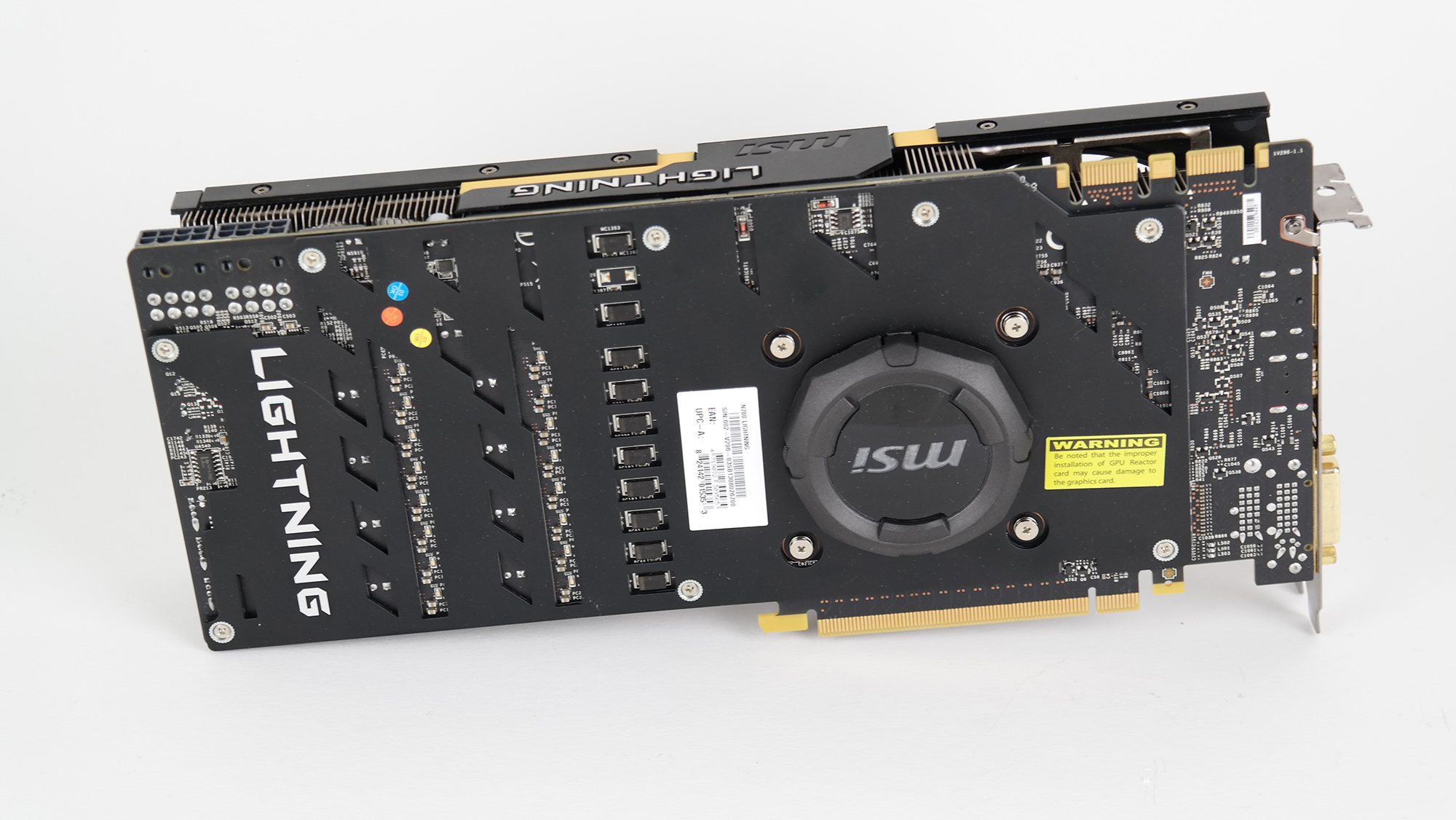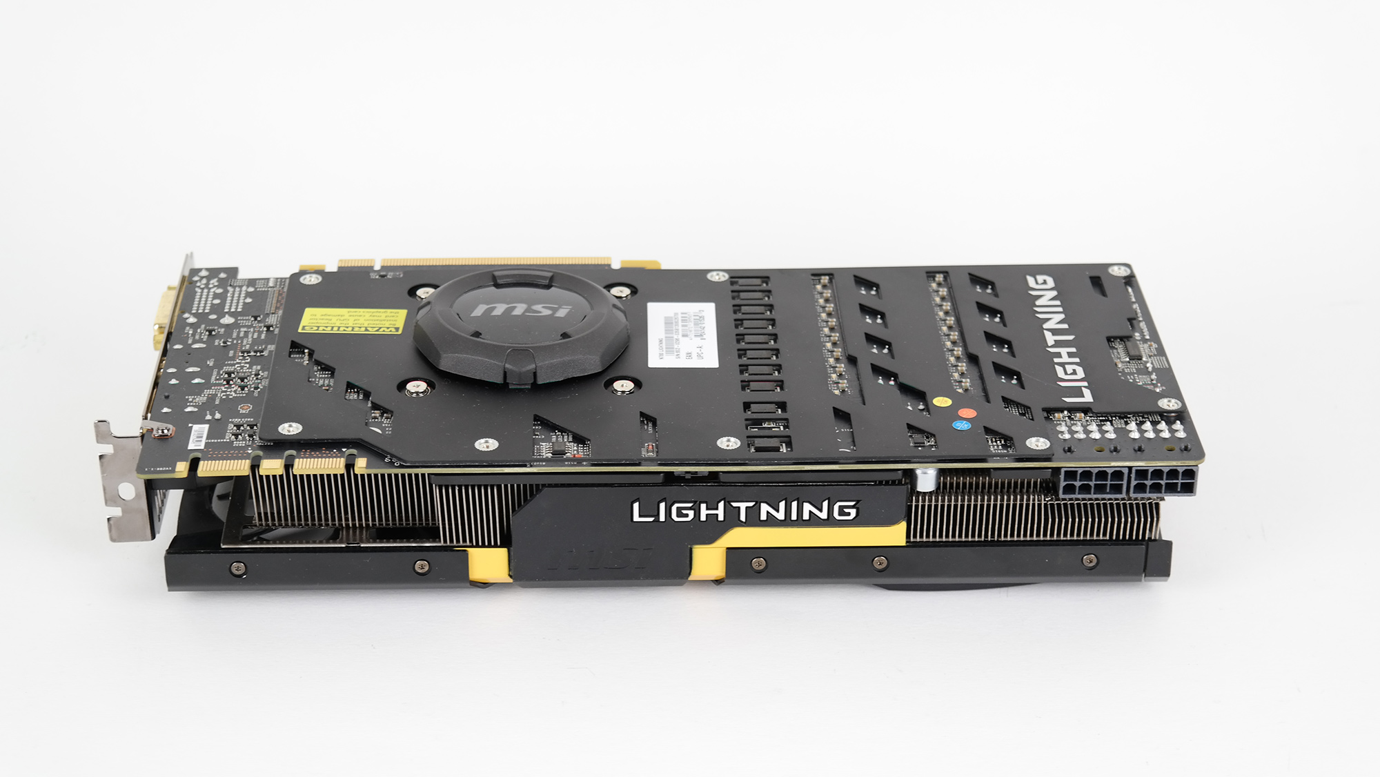 Med sitt tillvuxna kretskort och majestätiska kylare mäter MSI GTX 780 Lightning 295 millimeter på längden och 130 millimeter på höjden. Grafikkortet tar upp tre expansionsplatser och kan även få problem med fasta fästanordningar för expansionskort som i vårt testchassi från Lian Li.