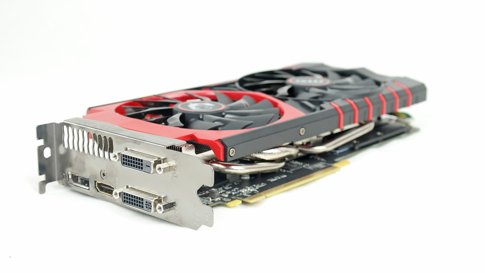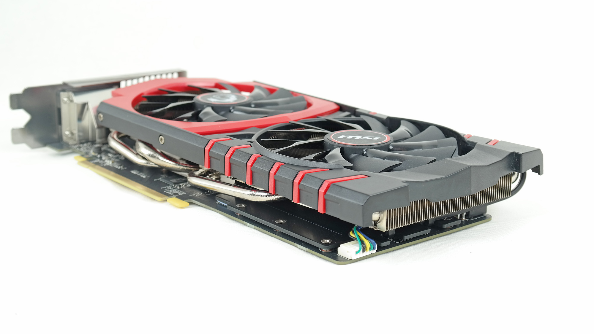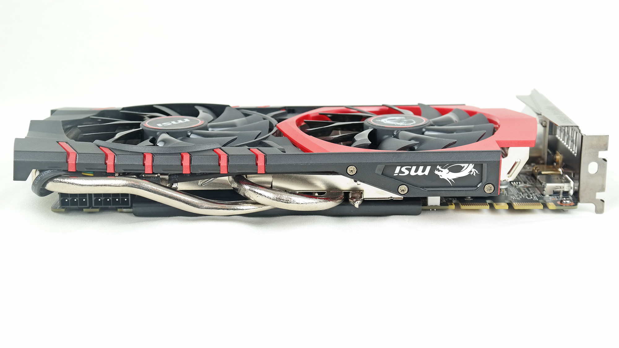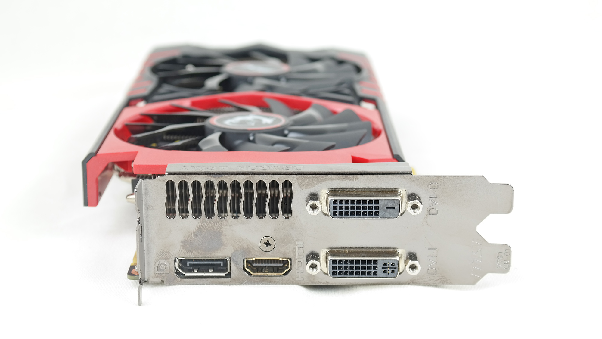 Även om MSI:s kort tar upp två expansionsplatser är det något tunnare än traditionellt för att ge bättre luftflöde och lättare installation vid SLI-konfigurationer. Noterbart är också att även om kortet är relativt högt är det samtidigt förhållandevis kort med en längd på 267 millimeter – vilket gör att detta kort bör få plats i de flesta chassi förutom riktigt trånga ITX-varianter. Skärmanslutningarna är den gamla klassiska uppsättningen från Nvidia med två DVI, en Displayport och en HDMI. Även här är det vär att nämna stödet för HDMI 2.0 specifikationen som möjliggör ultrahd/4K-upplösning vid 60 hertz.