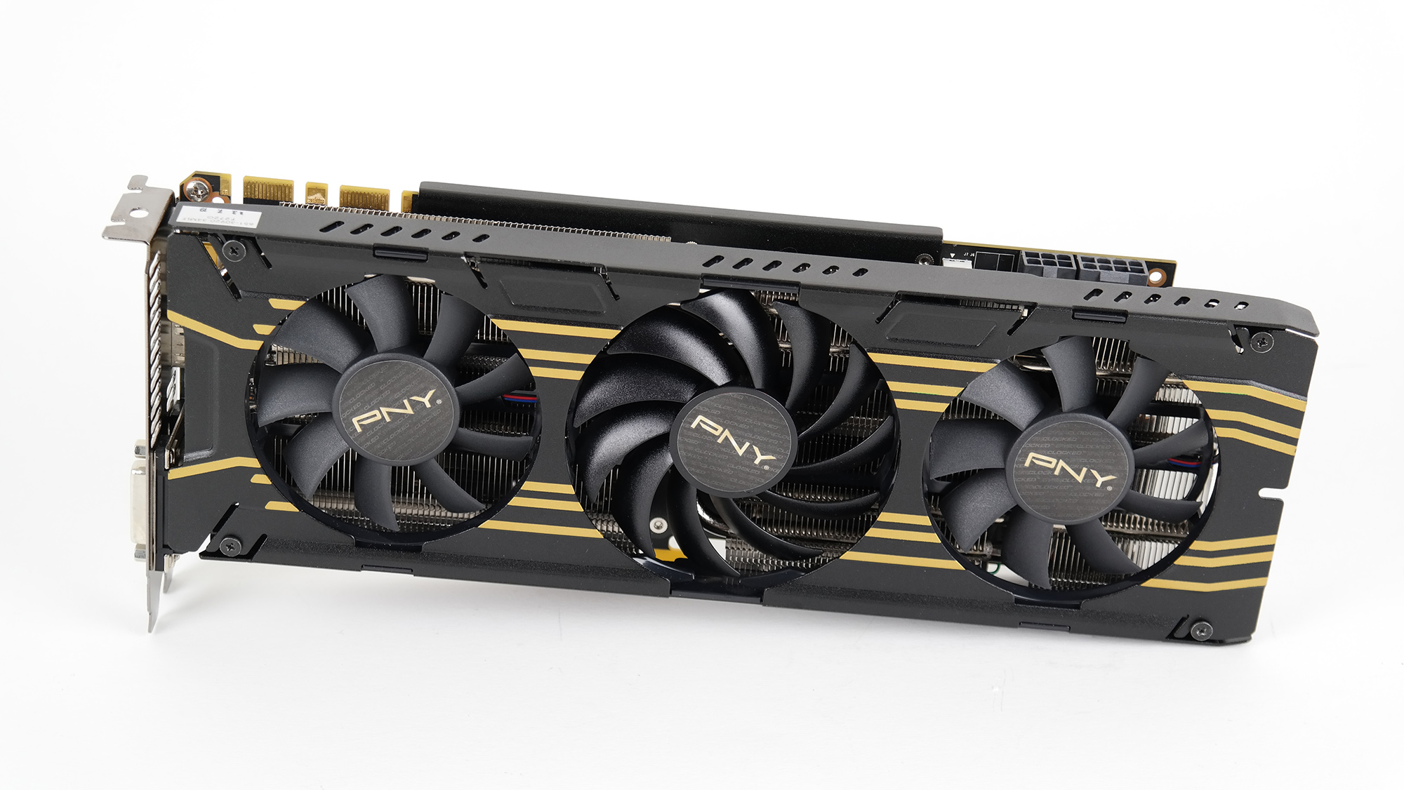 PNY inleder bra med väldigt generösa klockfrekvenser ur fabrik, 143 megahertz över basfrekvensen och 159 megahertz över boostfrekvensen. Minnesfrekvensen har i sin tur fått en knuff på 200 megahertz över de effektiva 6 008 megahertz som gäller för referenskortet, samma ökning som gäller för lillebror GTX 770 XLR8 Enthusiast Edition.