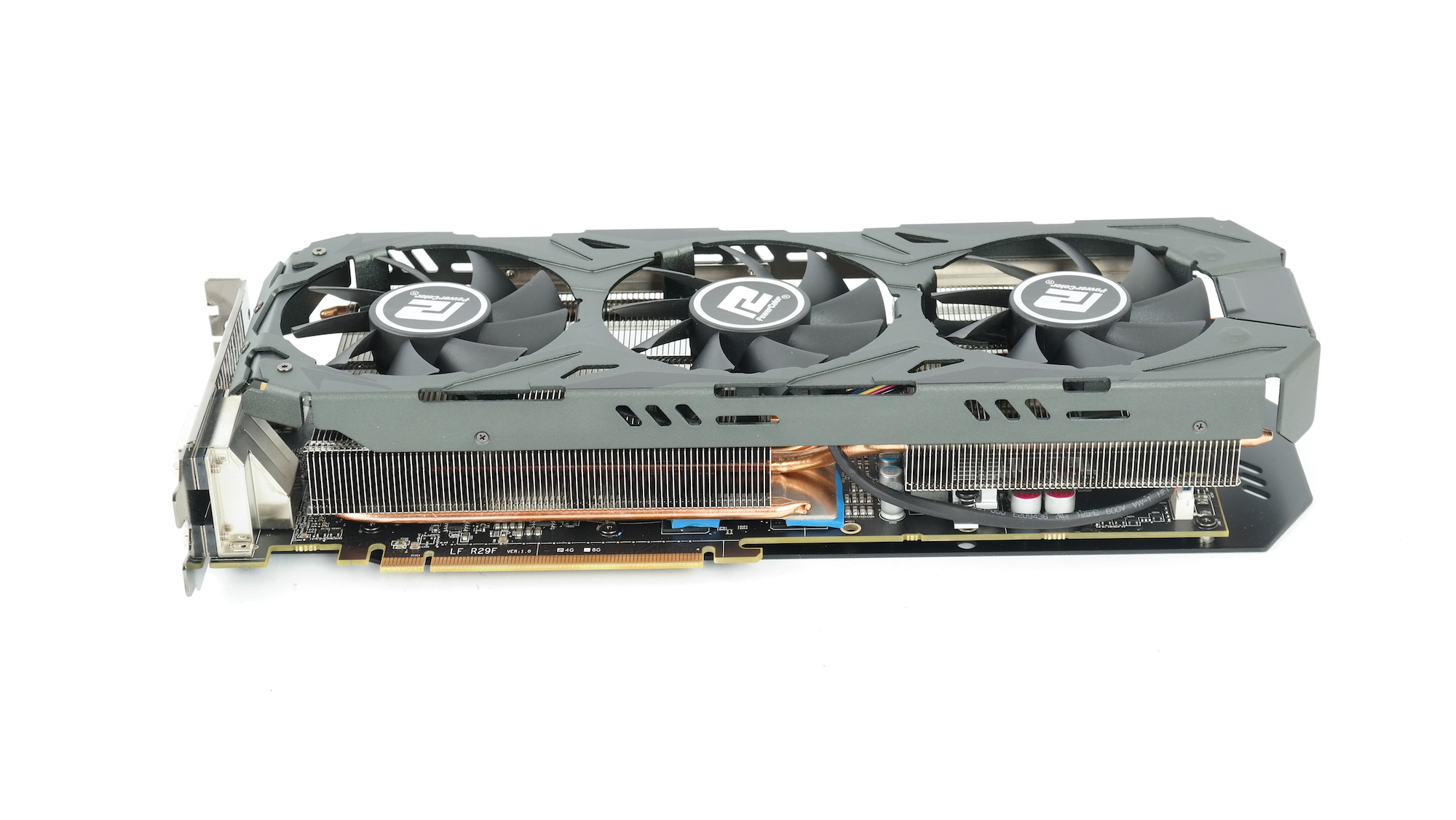 Där Powercolors tidigare kylare har varit relativt kompakta, men högjuda, skapelser med dubbla 92 milimetersfläktar för toppkorten i PCS+-serien (exempelvis HD6970) har företaget nu tagit fram en stor 2,5-slotskylare med 3 stycken 76 millimetersfläktar som pressar ner luft mot en väl tilltagen kylfläns beståendes av en solid kopparbas med fem värmerör, varav fyra på 8 millimeter, med kylflänsar i aluminium. Kortet är även nästan 30 centimeter långt och kan således utgöra ett problem i mindre chassin.