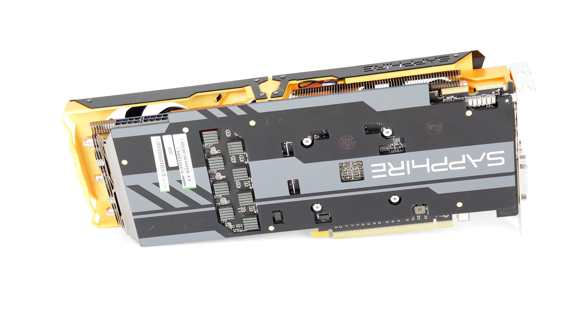 Just kretskortet är också en historia i sig där Sapphire satsat på en egen design med högkvalitativa kondensatorer och spolar för att maximera stabilitet och överklockningspotential. Spänningsdelen är på totalt 10 faser med 8 faser för GPU och 2 dedikerade faser för minne och I/O. Vi ser också två fullstora 8-pins strömkontakter samt två Crossfire-anslutningar. Grafikkortet kommer med dubbla DVI, dubbla miniDisplayport 1.2 samt en fullstor HDMI utgång.