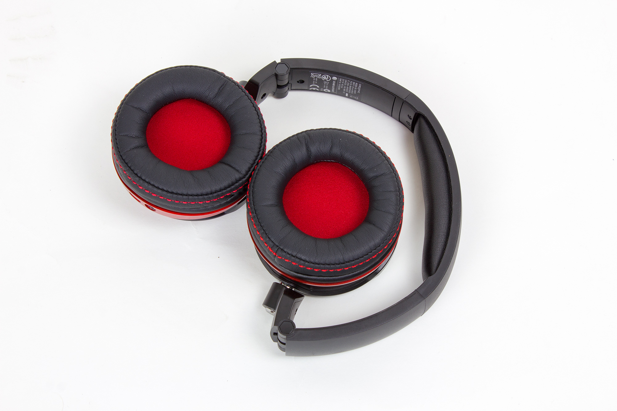 Muffarna är gjorda i konstläder med ett mjukt dämpningsmaterial, precis som de andra modellerna i serien. Knapparna som finns att tillgå är en strömknapp, två knappar för föregående/nästa låt samt loggan på den högra kåpan som också agerar knapp för Play/Pause och för att svara i telefon om du använder headsetet för mobilen.