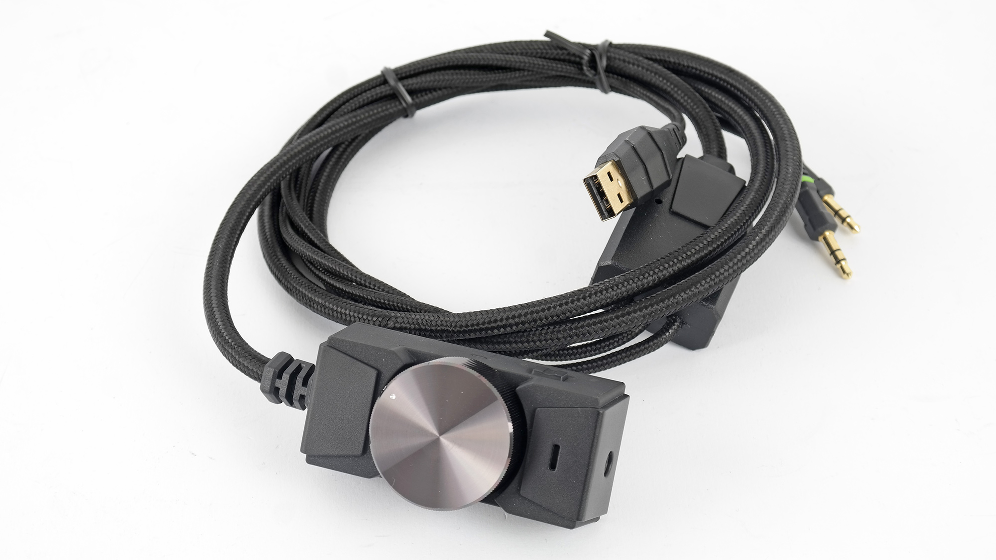 Strix Pro levereras som nämnt med en liten kontrollerenhet där du kan justera volymen, stänga av mikrofonen och som låter dig använda den inbyggda brusreduceringen för mikrofonen via ett reglage på undersidan. Viktigt att notera är att du måste använda dig av den medföljande kontrollerenheten för att ansluta till en dator. Adaptrar medföljer men endast för använding med Playstation 4, mobiltelefoner och andra enheter med fyrpoliga anslutningar.