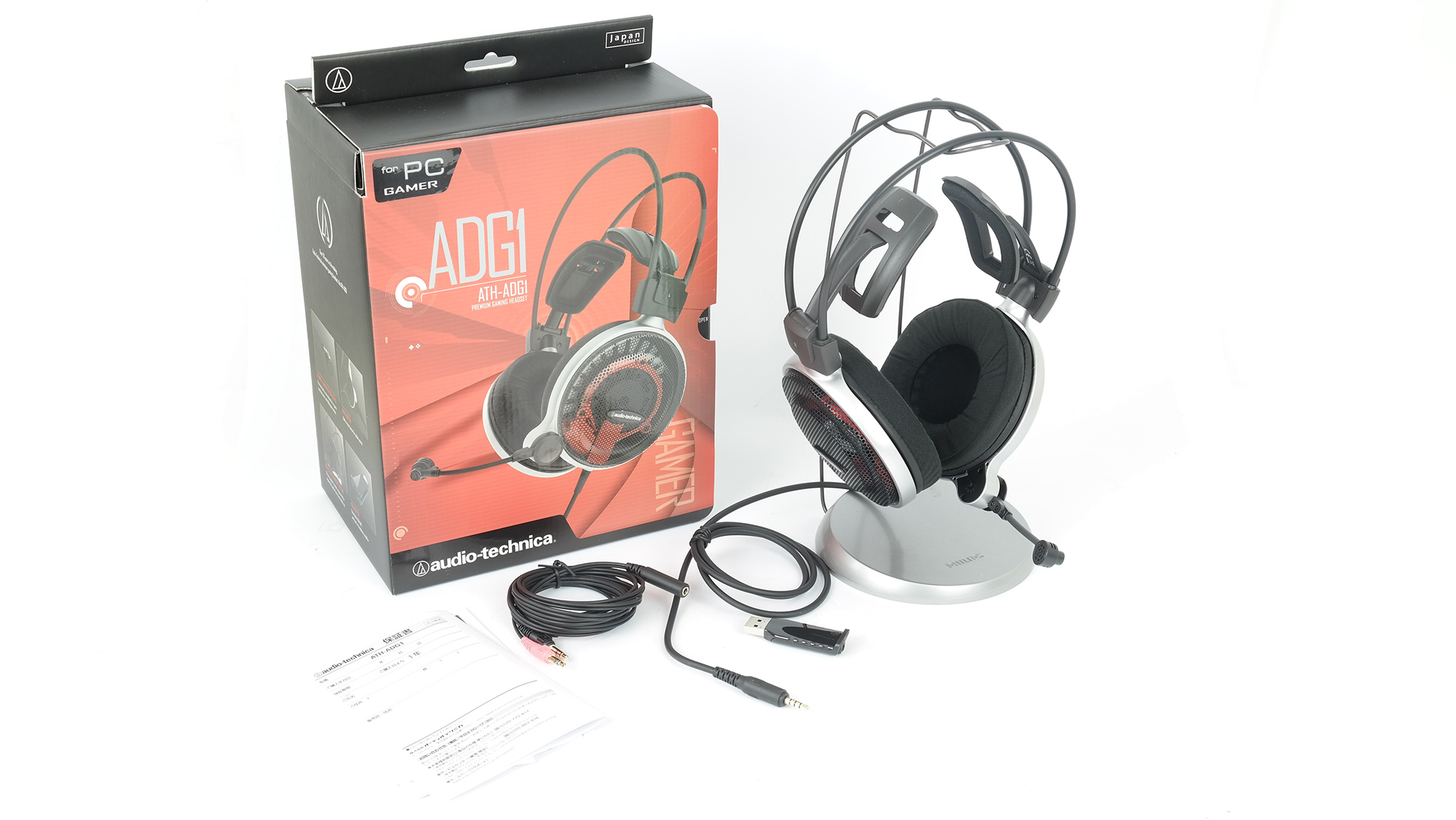 Tittar vi närmare på Audio-Technica ATH-ADG1 ser vi direkt att det Audio-technica har gjort är att basera modellen på deras hörlur ATH-AD700X med ytterst få modifieringar. Detta är inget som är direkt negativt utan är vanligt bland hörlurstillverkare, vi ser exakt samma mönster med Beyerdynamic och Sennheiser. ADG1 använder sig av samma öppna konstruktion och samma 53 millimeters element, de skillnaderna som finns jämfört med ATH-AD700X är ett helt nytt färgtema och en ordentlig mikrofon. ADG1 är mycket välbyggt och materialvalen är plast i nästan hela konstruktionen med ett hörlursgaller i aluminium. Audio-technica använder något dom kallar 3D-Wing på många av deras headset som istället för ett helt huvudband låter deras headset vila på huvudet med två stycken kuddar på vardera sidan. Detta gör så att belastningen fördelas lite annorlunda jämfört med traditionella headset.
