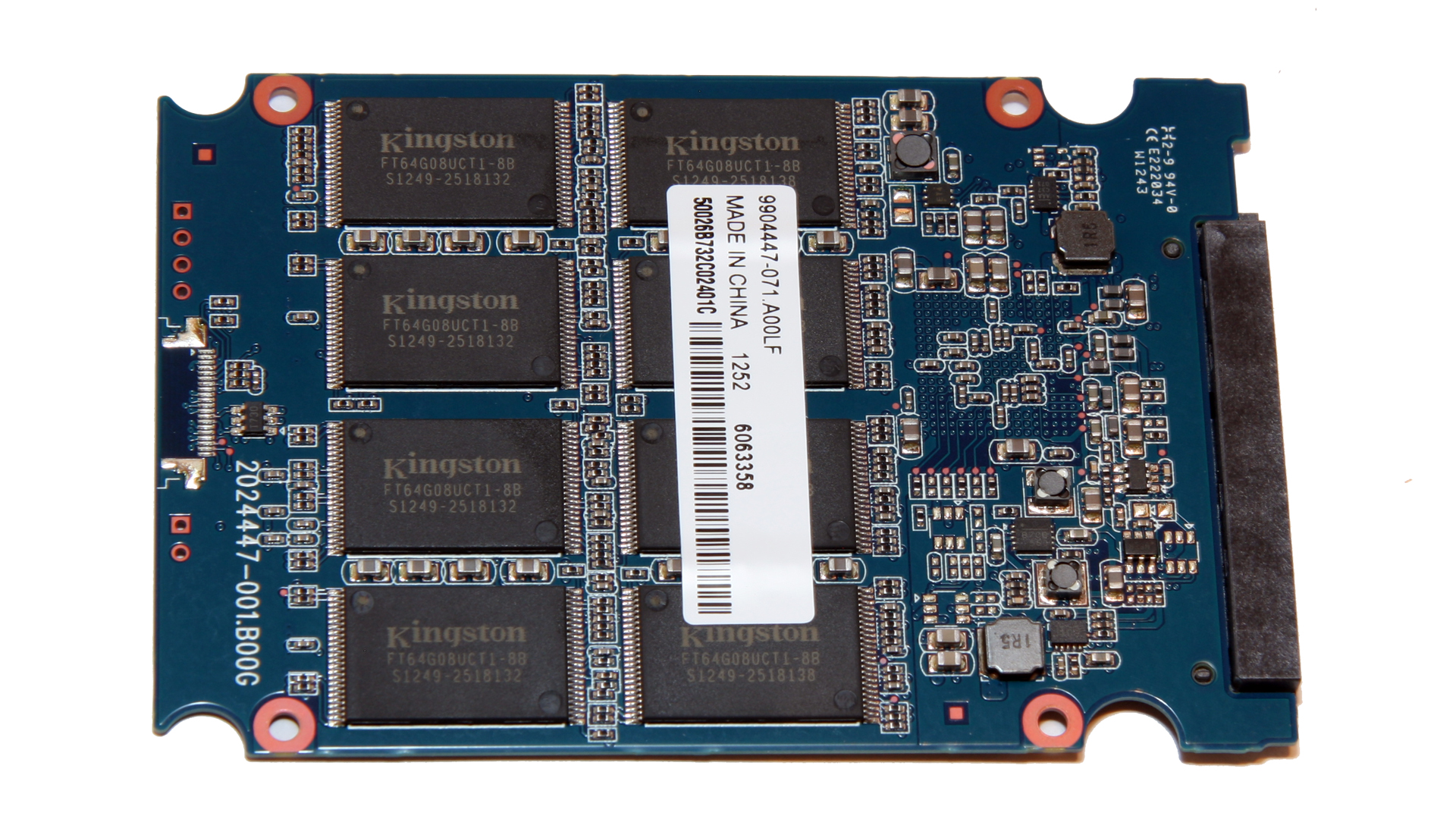 Något som däremot inte är fullt lika bra för oss är att Kingston börjat med så kallad “branding”. När vi öppnar enheten så ser vi att samtliga minneskretsar och även kontrollern bär Kingstons namn. Detta gör att Kingston sätter sina egna artikelnummer på chipen och det är då mycket svårt att identifiera dem. Vi får helt enkelt lita på den information som vi har fått från Kingston. En positiv sida av det hela är att det troligtvis är billigare för Kingston. Anledningen till det är att Kingston köper hela kiselwafers från Toshiba. På det sättet så kan Kingston göra en del av jobbet i sina egna fabriker vilket i sin tur är billigare än att köpa färdiga minneschip. Toshibas 19 nanometerteknik gör dessutom minnena billigare än tidigare.