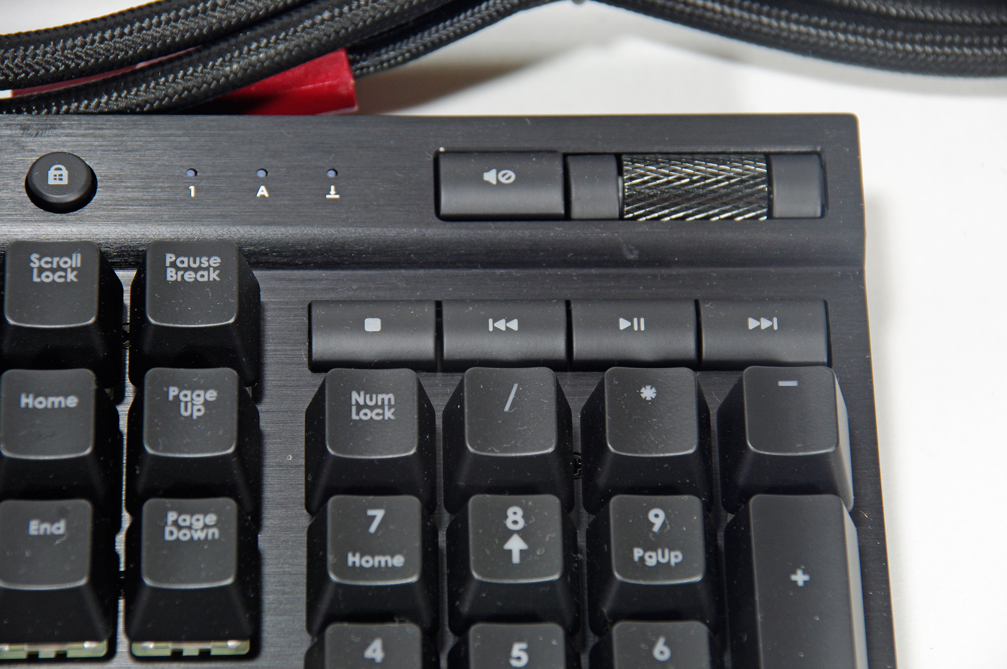 Corsair Gaming K70 RGB är Corsair Gamings FPS-modell i RGB-serien och har av den anledningen inga makrotangenter. Tangentbordet har däremot riktigt bra mediatangenter som fungerar med alla de program vi testat. Scrollhjulet är riktigt bra men fyra av fem tangenter har samma placering som på föregångaren. Lite dumt då man behöver göra en dykning med fingrarna för att nå.