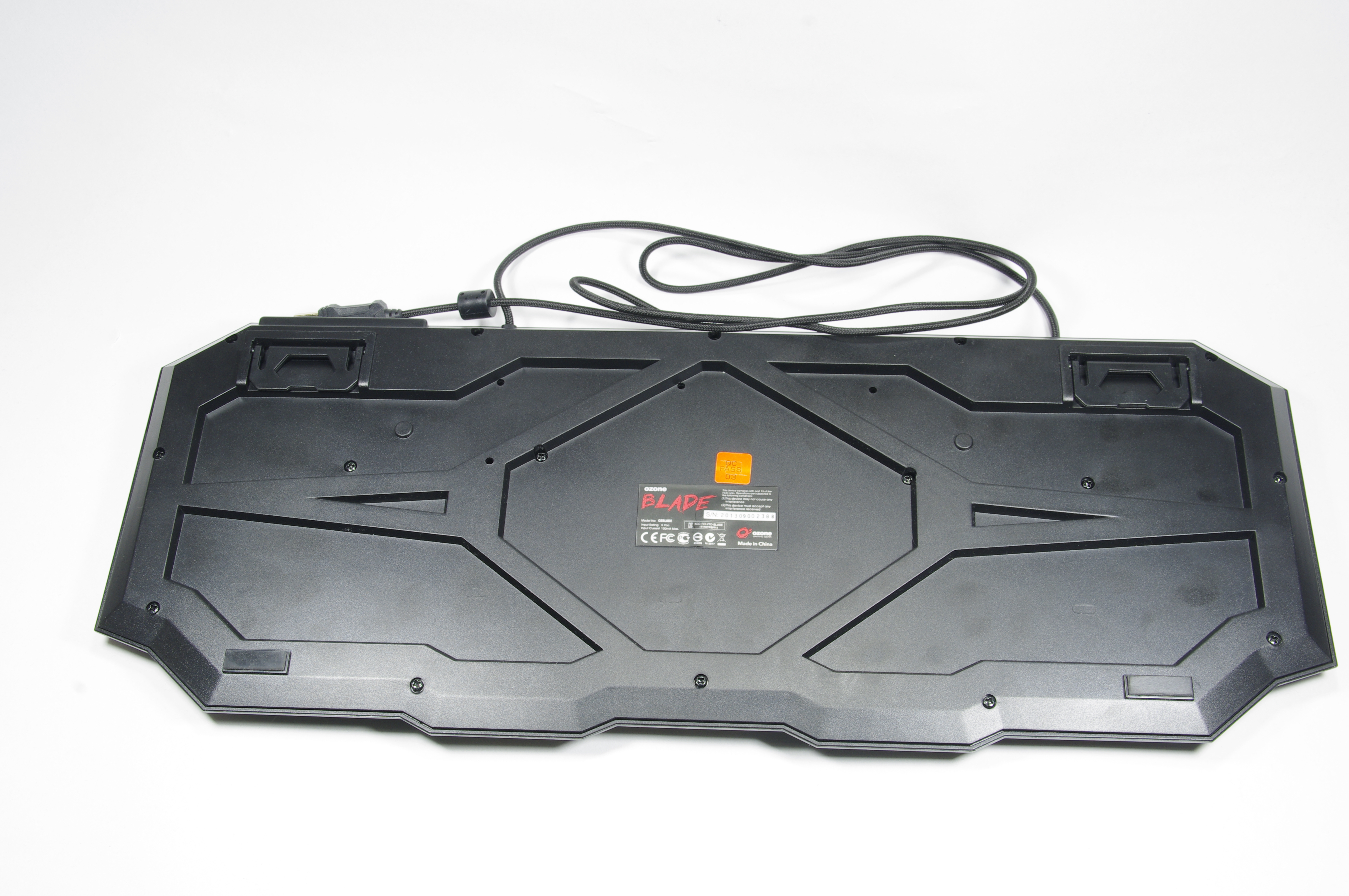 Ozone Gaming Blade är ett fullstort tangentbord med åtta extra tangenter, fyra på vardera sida. Designen är aggresiv och det ser lite ut som att Ozones designer precis tittat på en Sci-Fi film innan han ritade tangentbordet. Blade har ett kantigt handledsstöd med två avlånga utskärningar som lyser i tangentbelysningensfärg. Effektfullt och kanske snyggt att titta på men det är inte särskilt ergonomiskt med de olika nivåerna på handledsstödet. Tangentbordet är belyst i två olika färger, rött eller blått. Det går att växla mellan färgerna genom en tangent på den högra sidan. Det går att ställa intensiteten genom ett skjutreglage. Det känns inte helt klockrent och det verkar inte som intensiteten förändras med 50 procent när man har skjutit reglaget till mitten.