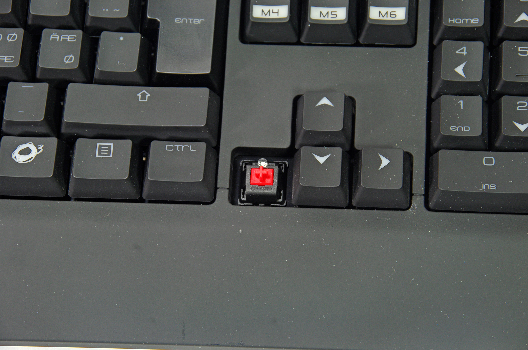 Strike Pro går att få med Cherrys fyra vanliga brytare, blå, röd, svart och brun. Den modell vi har testat har de röda brytarna. De röda brytarna är snabba, härliga och förhållandevis tysta. Ozone har inte valt att modifiera brytarna utan det är standardvarianten av Cherrys brytare som sitter under tangenterna. Och de fungerar bra i ett speltangentbord.