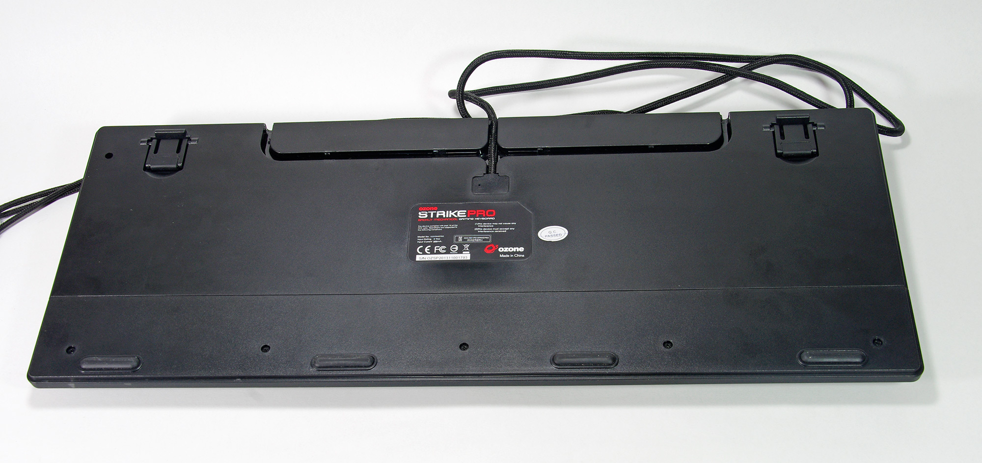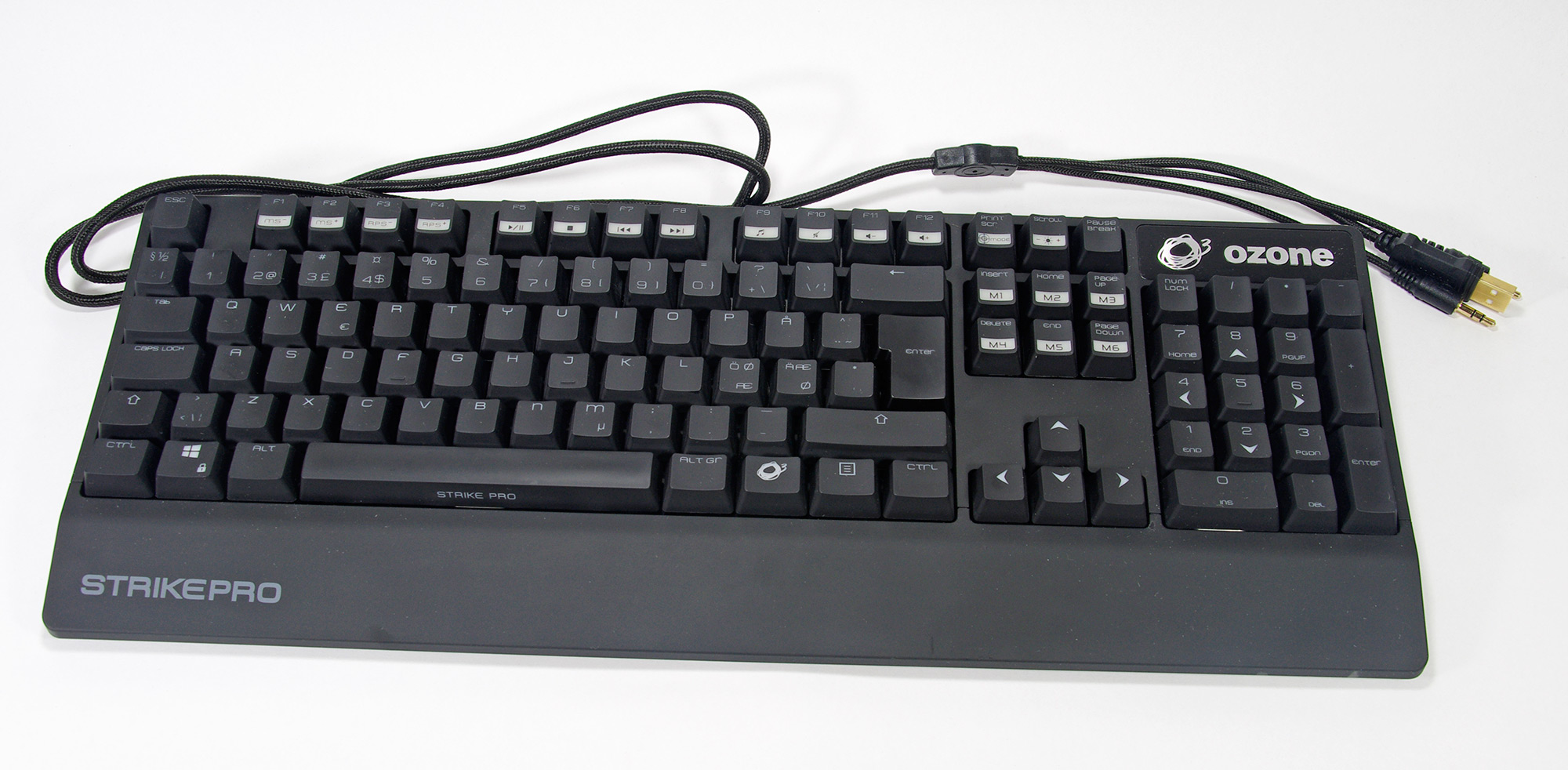 Ozone har valt att gå den minimalistiska vägen när de designat Strike Pro. Inget bling bling eller annat onödigt. Bara ett speltangentbord. Tangentbordet är knappt bredare än vad som krävs för att få plats med alla tangenter. Tangentbordet är svart med vita bokstäver och symboler på tangenterna. tangentbelysningen är vit, med elva stycken röda. Tangenterna är upplysta av varsin diod. Men av okänd anledning är ljuset väldigt ojämnt och svagt på nummerraden, vilket ser lite taffligt ut på ett annars väldesignat tangentbord. F-tangenterna har extrafunktioner och även dessa utmärkningar är upplysta. Strike Pro kommer inte med något handledsstöd utan man får nöja sig med det inbyggda som tyvärr inte riktigt är tillräckligt stort och lutar lite för mycket för att kunna ge optimalt stöd.
