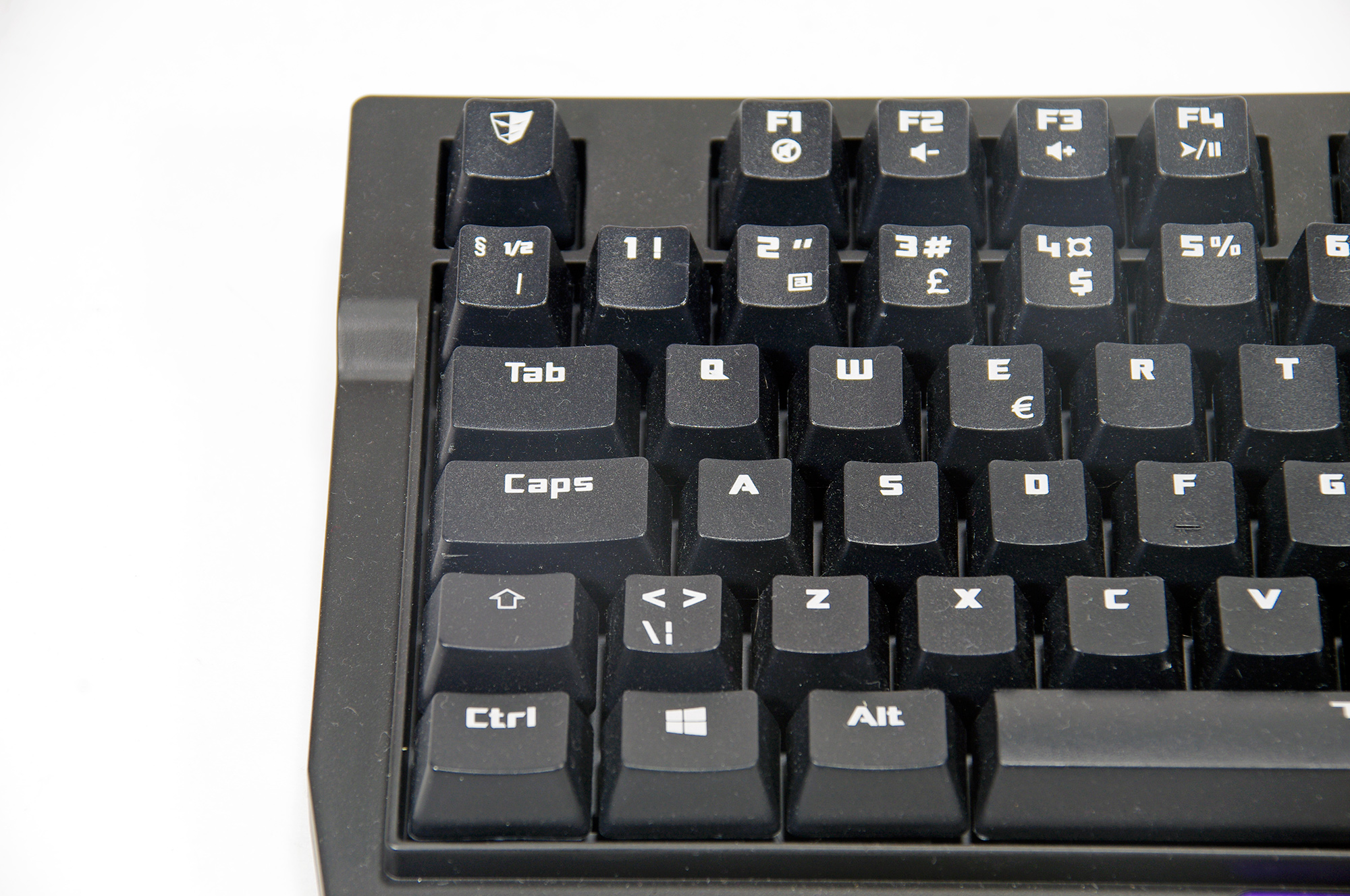 Mediatangenter finns inte att tillgå men bara som extrafunktioner på F1-F6 och dessa aktiveras genom att hålla ner Tesoroknappen som tagit den högra windowstangentens plats.