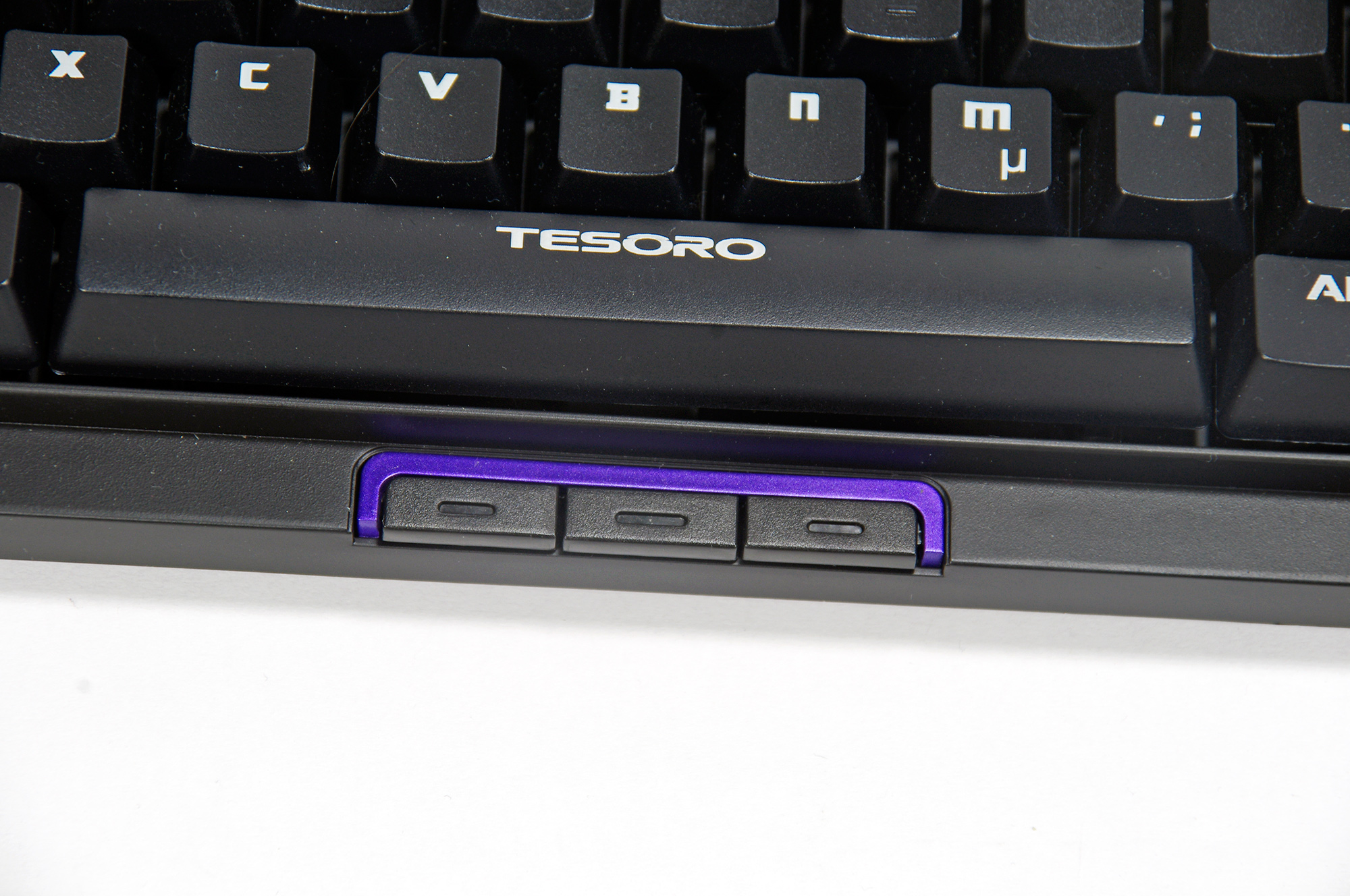 Tizona kommer med tre stycken makrotangenter placerade under mellanslagstangenten. Tillskillnad från Tesoros andra modeller är dessa inte nedsänkta. De är inte heller lika lätta att undvika som på andra modeller. Detta gör att man lätt kommer åt tangenterna av misstag. En annan negativ aspekt med dessa knappar är att de inte går att programmera om. Man kan växla mellan två lägen, i PC-läget öppnas en webbläsare, mediaspelare eller en epostklient. I gaming-läget får de funktionen av de tre tangenterna brevid numlock.