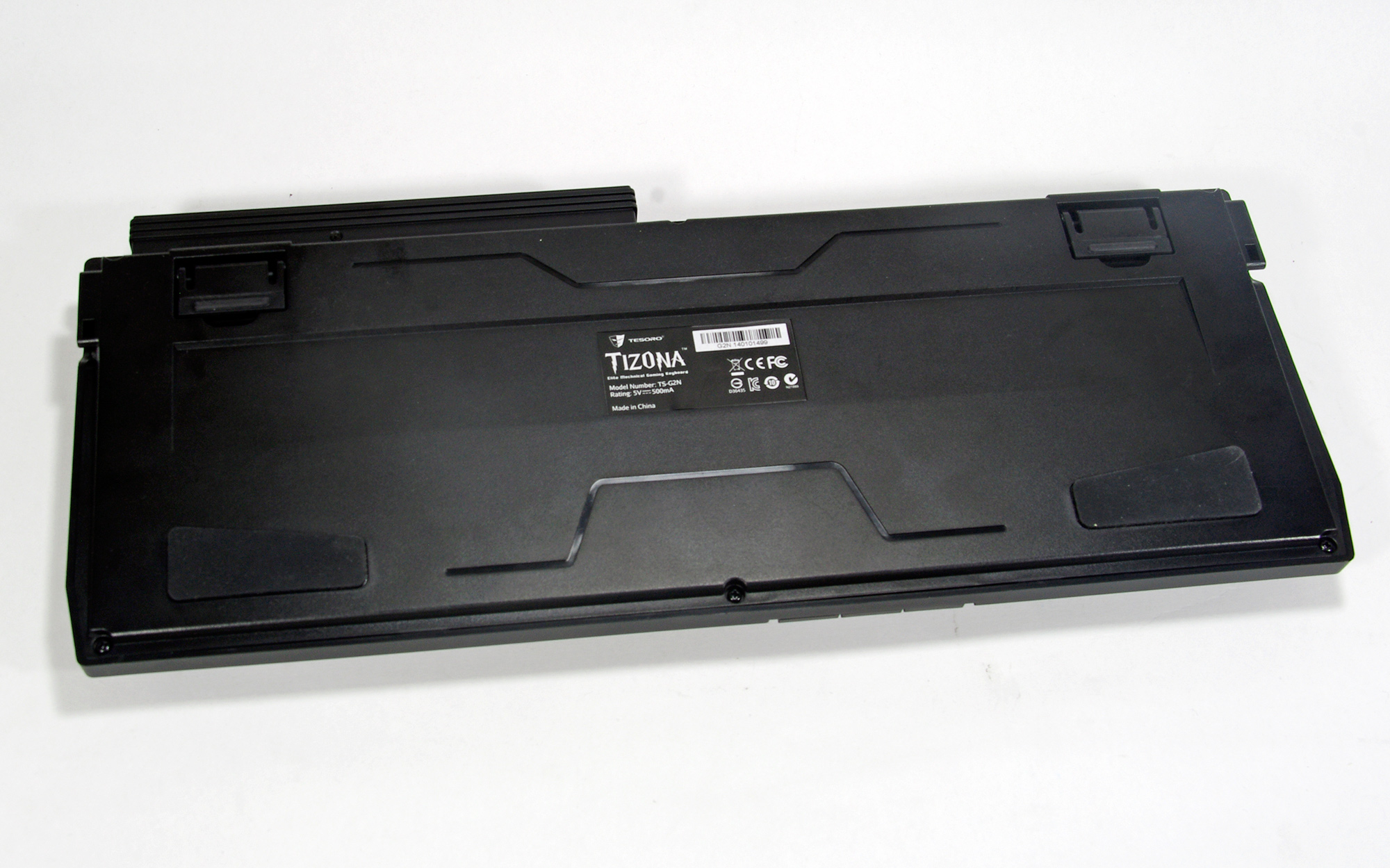 Tesoro Tizona är ett kompakt litet tangentbord utan några flashiga detaljer. Med mindre än en centimeters spelrum runt omkring tangenterna så är Tizona ett tangentbord designat för att inte ta plats. Dioderna som indikerar gaming mode, scroll och caps lock sitter placerade ovanför piltangenterna istället för att vara placerade uppe i högra hörnet som de brukar. Dioderna sitter placerade på en lila nedsänkt platta som är den enda detaljen på tangentbordet. Tizona har ingen tangentbelysning men har en avtagbar USB-kabel för att underlätta när man packar ner tangentbordet i väskan.