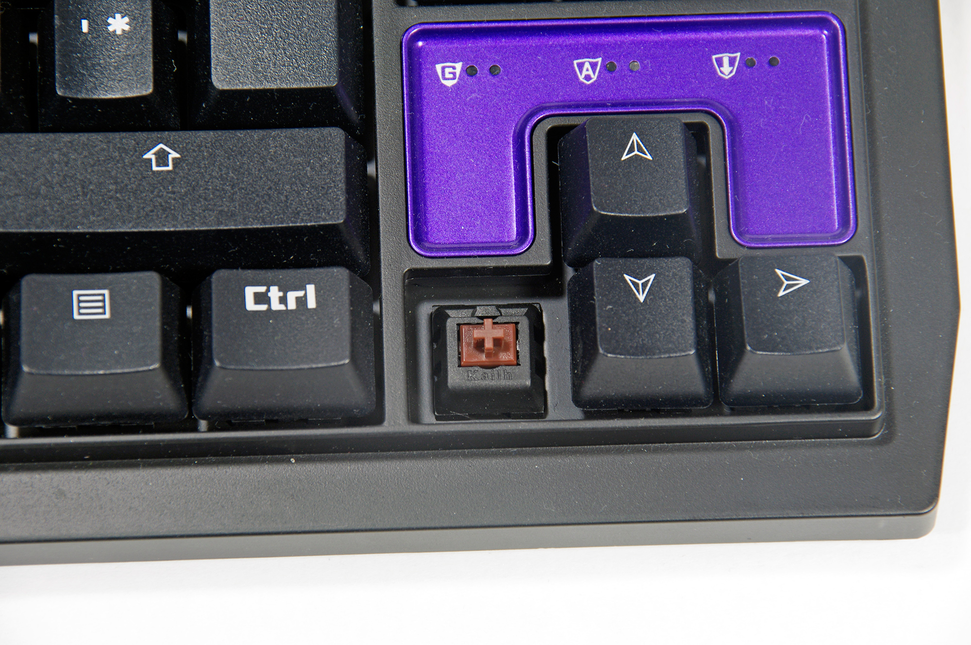 Tesoro Tizona kommer med Cherry-kloner från Kalih. Kalihs brytare känns precis som Cherrys switchar och har till och med samma färgkodning. Vi har testat versionen med bruna brytare men tangentbordet går att få med blå och röda brytare. För en användare så är skillnaden på Kalihs brytare jämfört med Cherrys brytare närmast obefintlig, samma motstånd, slaglängd och aktiveringspunkt gör att den enda skillnaden är märkningen på brytarna. De bruna brytarna är lite av en kompromiss mellan spel och skrivbrytare så för oss känns det rätt för ett tangentbord anpassat för att kunna ta med på resan.