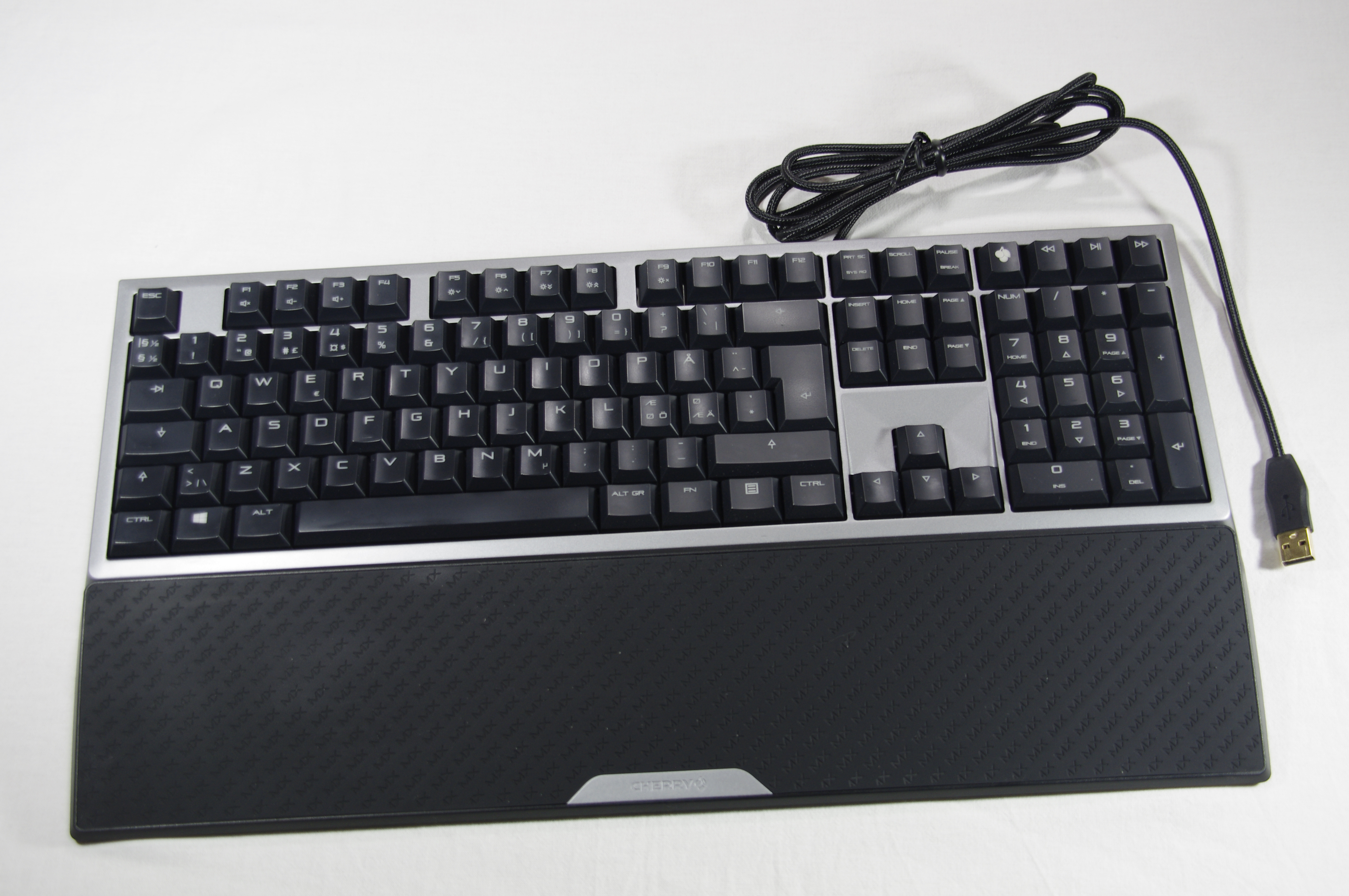 När vi plockar upp MX-Board 6.0 märks det tydligt att Cherry har valt att lägga betydligt mer fokus på byggkvalitén jämfört med vad de gjorde på MX-board 3.0. Tangentbordet är tungt, det väger strax över 1,3 kilo och känns väldigt robust. Höljet är gjort i grått aluminum och flexar inte en milimeter vid hantering av det utan känns lika solitt som en sten. Den grå finishen på tangentbordet är stilfullt och annorlunda men på samma gång diskret. Det ska tilläggas att tangentbordet känns väldigt högt om man inte använder handledsstödet, cirka 30 millimeter från skrivbordet upp till den nedersta brytaren.