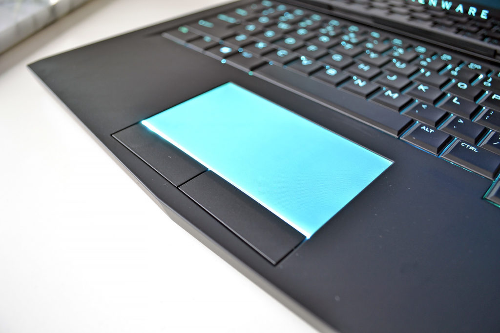 Pekplattan på Alienware 13 är ensam i sin klass då det är den enda pekplattan vi testat som har inbyggd RGB-belysning som tänds när vi rör vid den. Kanske skulle Alienware istället jobba mer med funktionen istället för belysning då pekplattan i vår mening är för liten för att kunna jobba produktivt och responsen är inte den bästa.