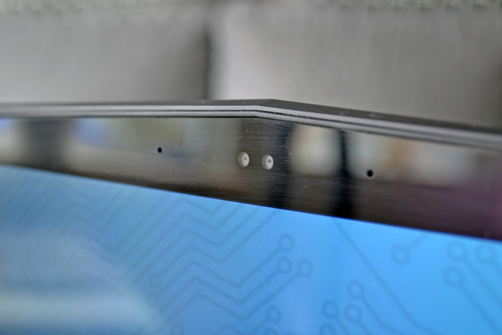 Strax ovanför skärmen finns även en Tobii Eye Tracker som gör att vi kan styra vissa spel och kommandon på datorn. För dig som vill veta mer om Tobii Eye Tracking se vår intervju med Tobii.