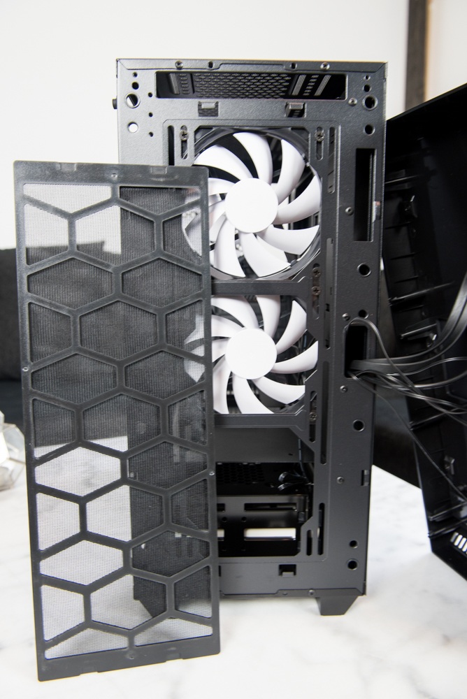 När det kommer till fläktplatser så finns det gott om val, i fronten och toppen kan du placera antingen 3 x 120 mm eller 2 x 140 mm fläktar och i bakkant kan du placera en 120mm fläkt. Alla fläktar i fronten, toppen och botten är försedda med luftfilter.