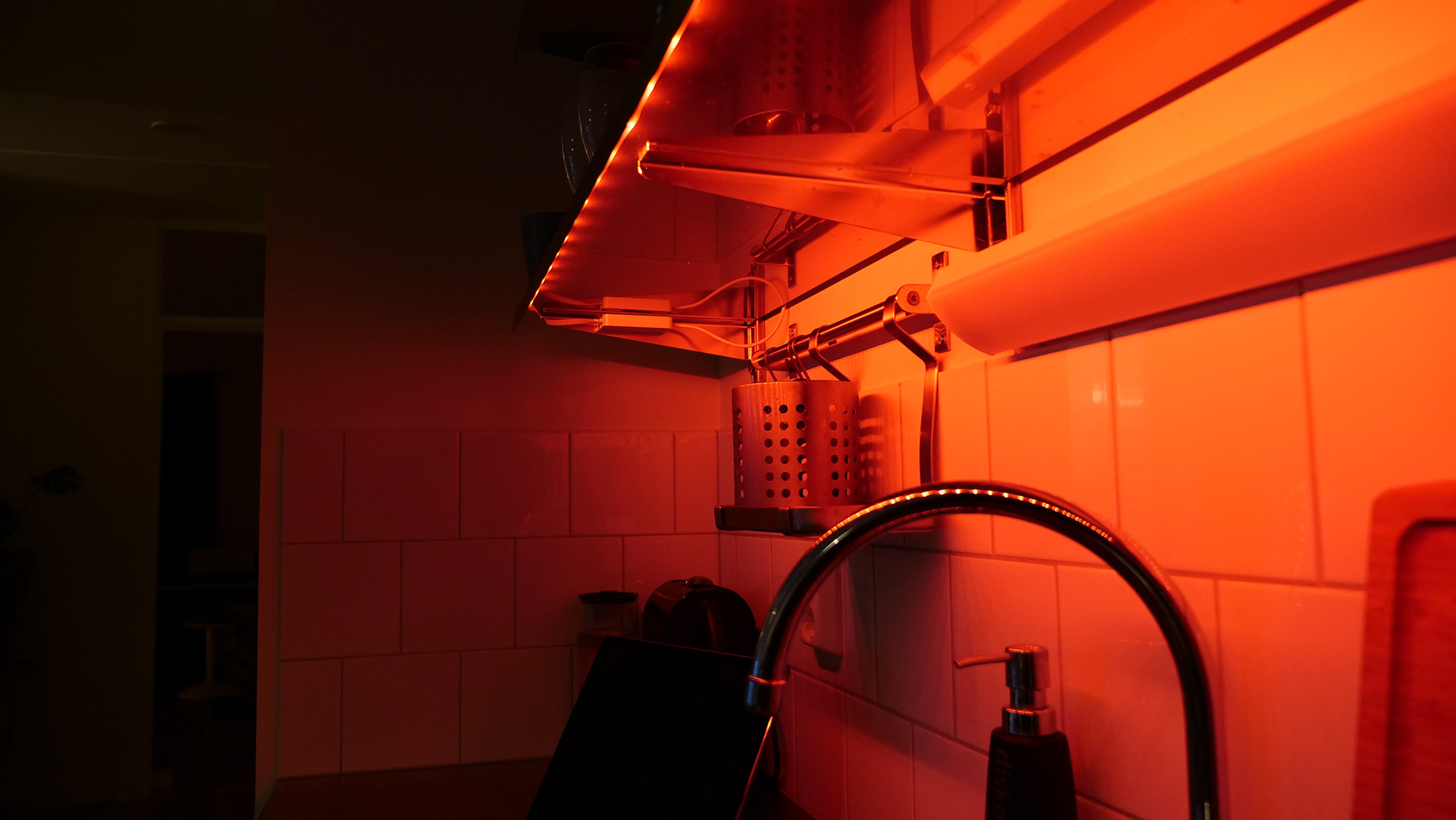 Light stripsen kan med sina många LED:s ge upp till hela 1 600 lumens i ljusstyrka och är klockren för en yta där du vill ha stark och jämn belysning. Jag kan återigen rekommendera en installation över köksbänken, det fungerar klockrent. Det enda negativa är att de tre separerade dioderna (Röd, Grön, Blå) syns en och en när listen lyser mot en annan närliggande yta. Exempelvis om du har en ljuslist runt skrivbordet och placerar bordet/listan bara någon centimeter mot väggen. Fler dioder hade då gett ett mer jämt ljusflöde. Även den medföljande trafon kan bli lite knepig att placera om du har otur, för mig har dock den långa strömkabeln varit en räddning i två av tre installationer.