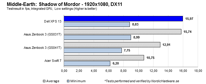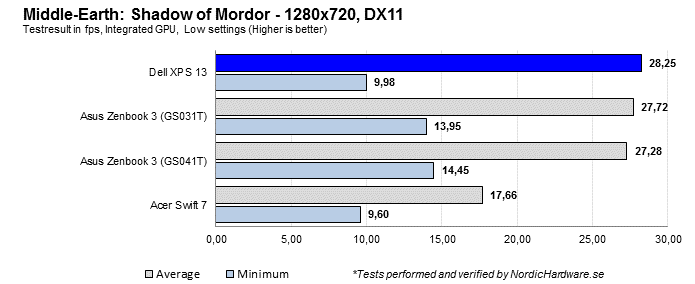 Dell XPS 13 och i7-modellen av Asus Zenbook 3 presterar praktiskt taget identiskt i Shadow of Mordor.