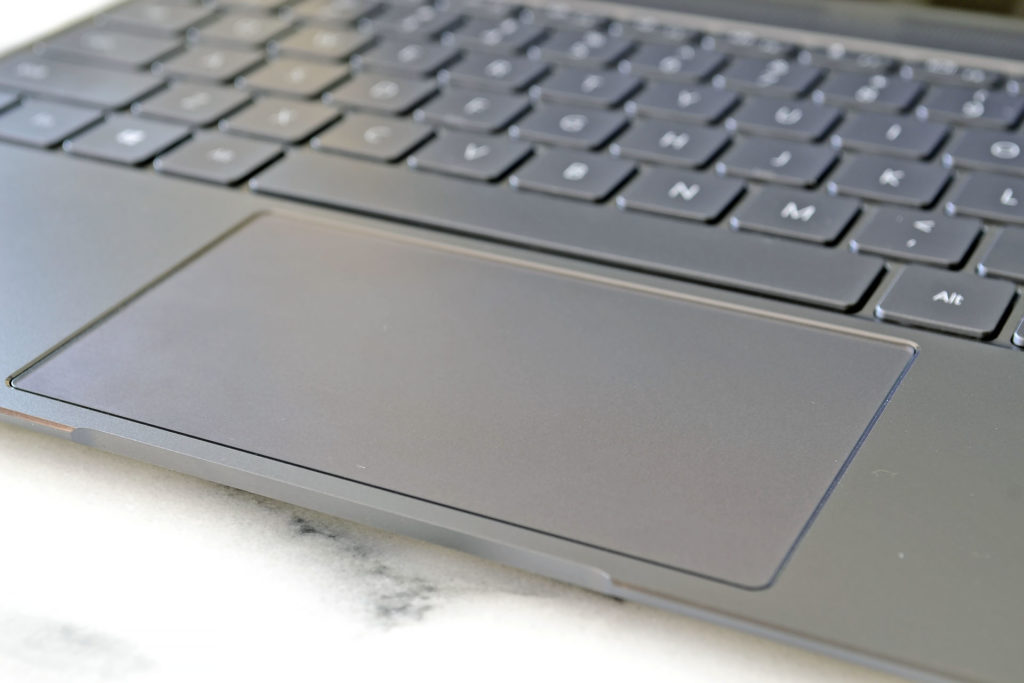 Kort och gott vill vi beskriva tangentbordet som imponerande med tanke på datorns tunna design. Slaglängden är tillräckligt lång för att ge en taktil feedback i varje tangent även om vi inte fick en svensk layout på vårt tangentbord så skriver vi minst lika effektivt på Matebooks X tangentbord som på andra tangentbord som vi gillar.